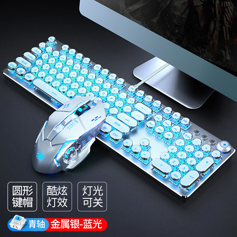 • 유선 은빛 흰색 파랑 그린 샤프트 [펑크 노브판] + 유선 마우스
