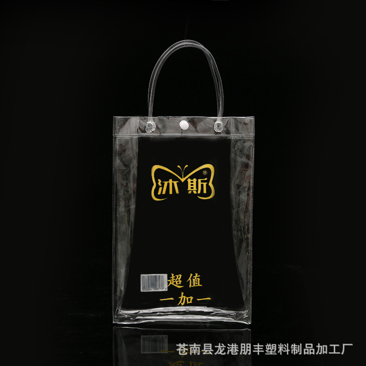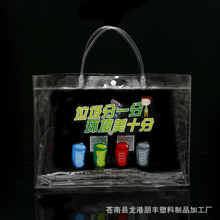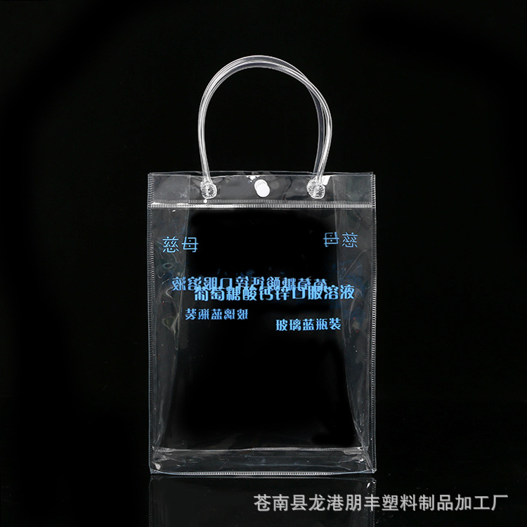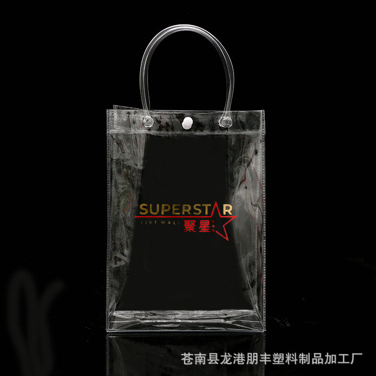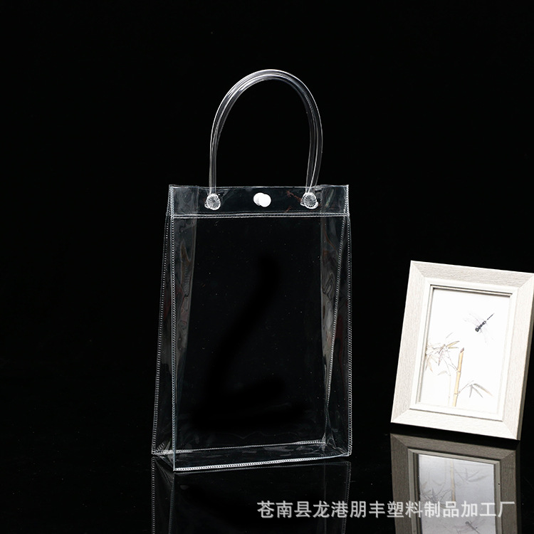 공장 직접 PVC 핸드백 플라스틱 투명 스냅 버클 가방 사용자 정의 PVC 범용 선물 포장 가방스토어 가기