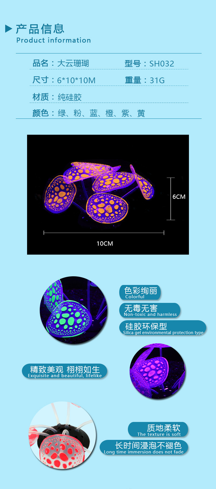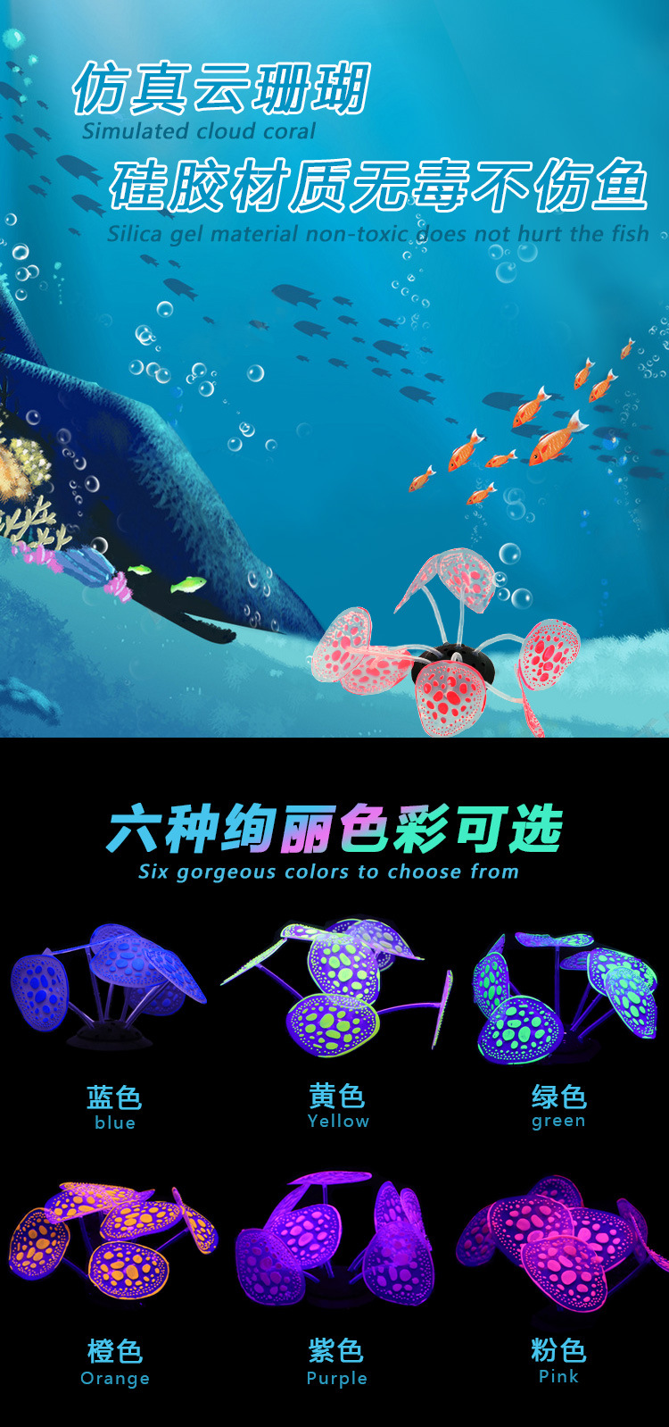 공장 도매 어항 장식품 실리콘 소프트 모조 산호 형광 효과 대형 클라우드 조경 분재스토어 가기