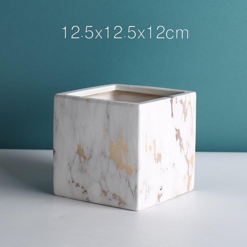 세라믹 화분 북유럽 대리석 패턴 홈 간단한 창조적 인 녹색 심기 색상 황금 라운드 다육 질 수경 세트스토어 가기