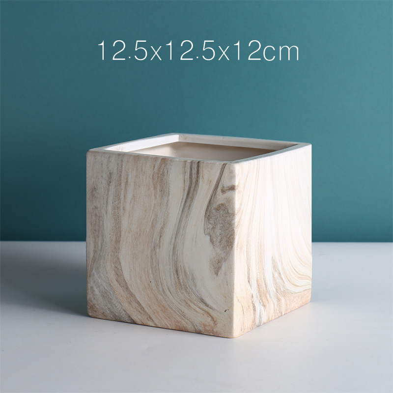 세라믹 화분 북유럽 대리석 패턴 홈 간단한 창조적 인 녹색 심기 색상 황금 라운드 다육 질 수경 세트