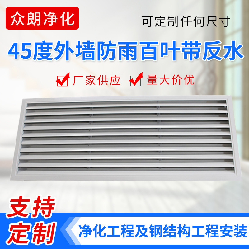 45 도 외벽 방수 루버, 방수 공기 조절 입구 및 출구 리턴 공기 배출구 방수 루버 환기 알루미늄 합금 루버