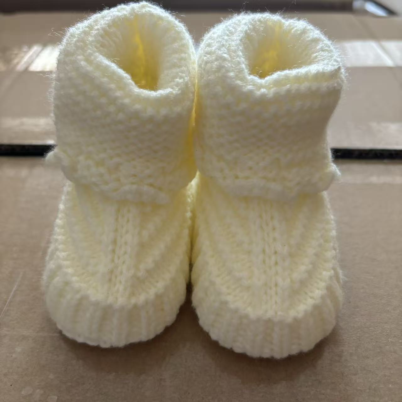 수제 완성 된 니트 봄과 가을 아기 울 신발 신생아 울 신발 아기 니트 신발 0-3-6 개월