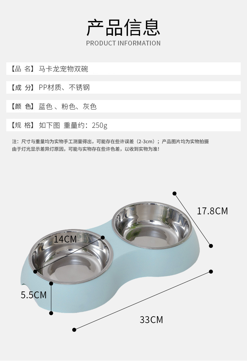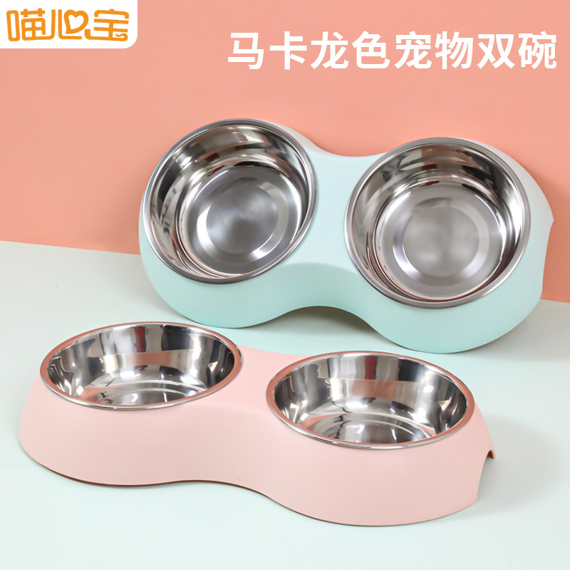 마카롱 고양이 그릇 인 스타일 애완 동물 그릇 패턴 마시는 그릇 스테인레스 스틸 더블 그릇 고양이 먹이 그릇 도매