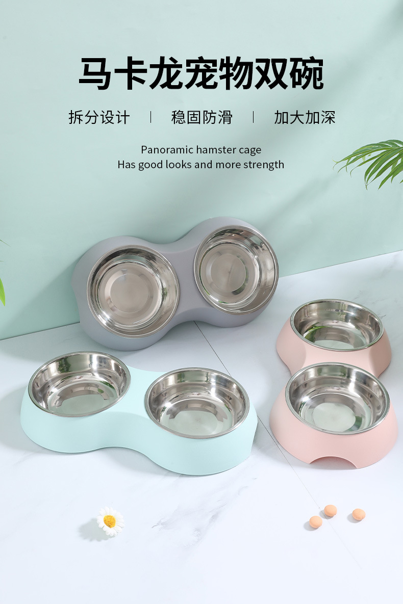 마카롱 고양이 그릇 인 스타일 애완 동물 그릇 패턴 마시는 그릇 스테인레스 스틸 더블 그릇 고양이 먹이 그릇 도매스토어 가기