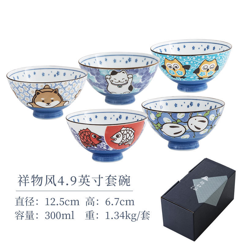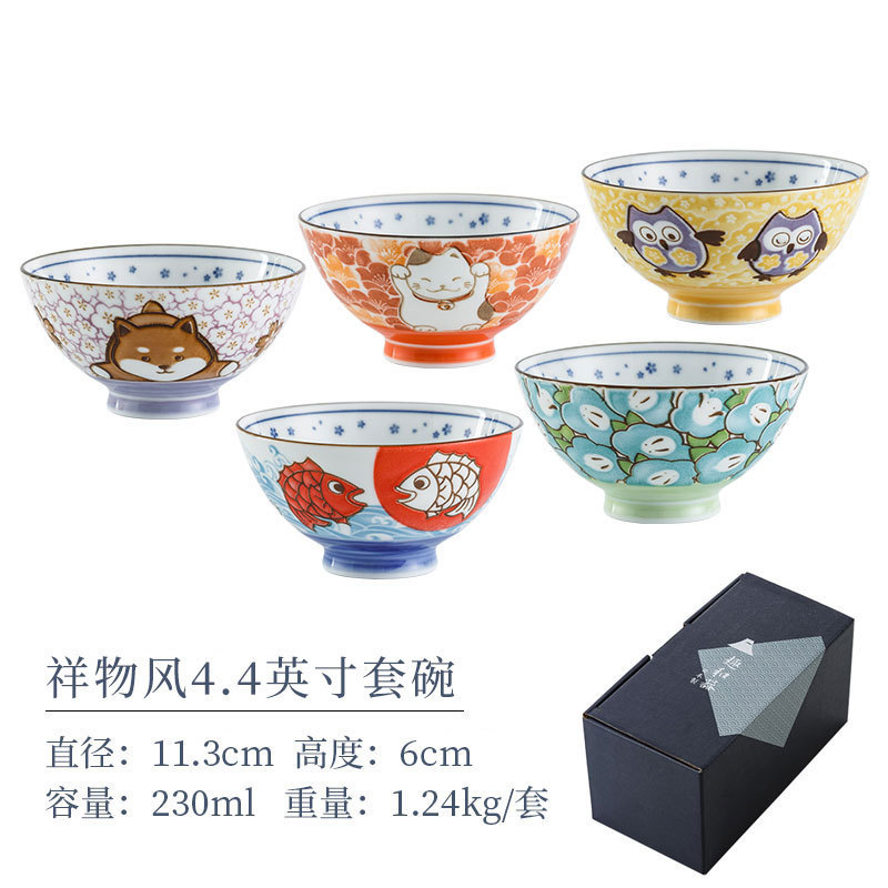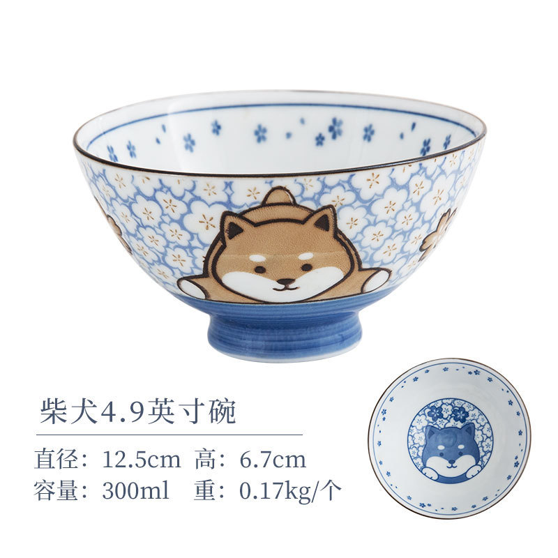 일본 수입 치요겐 만화풍 시바견 유약칠 세라믹 그릇 작은 그릇 동물 고양이 밥그릇 식기 일본식
