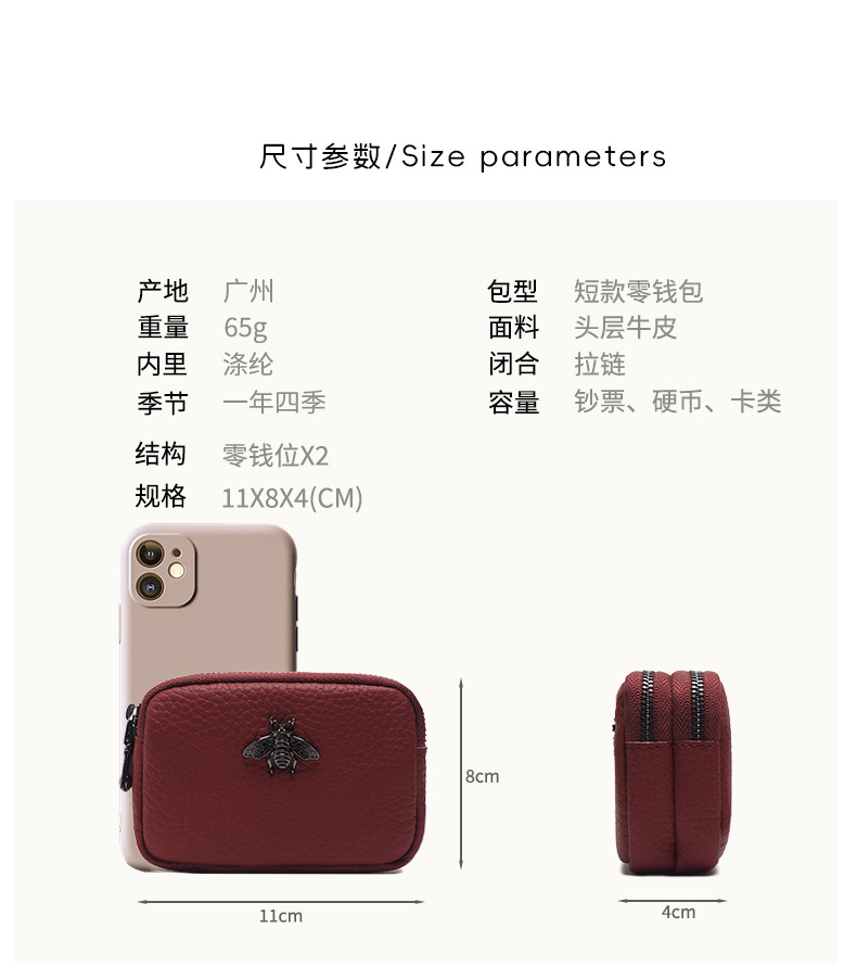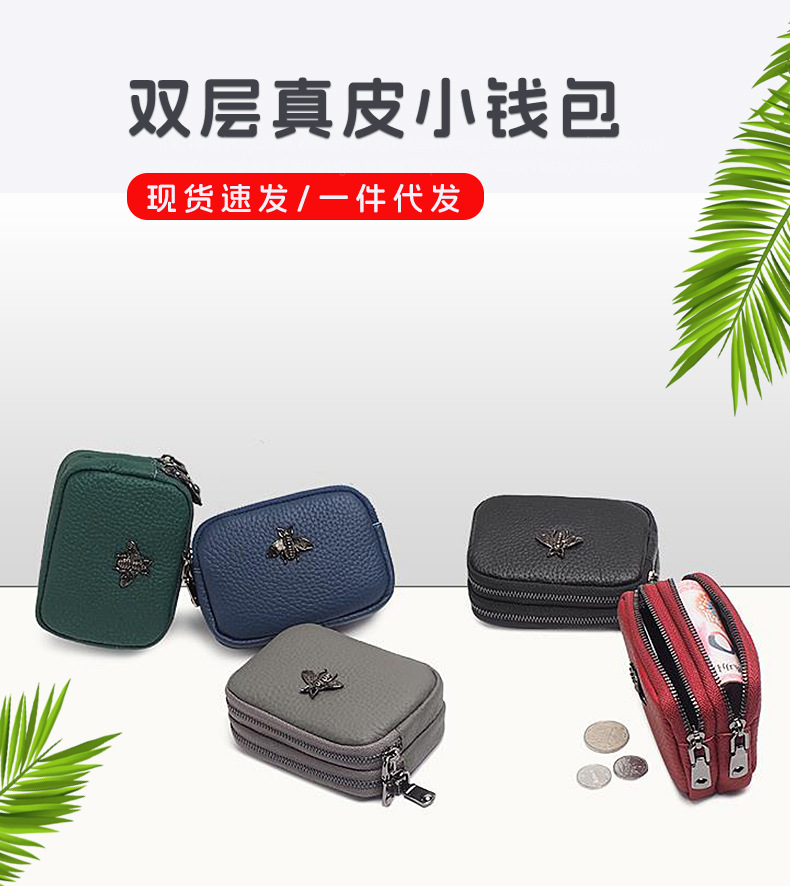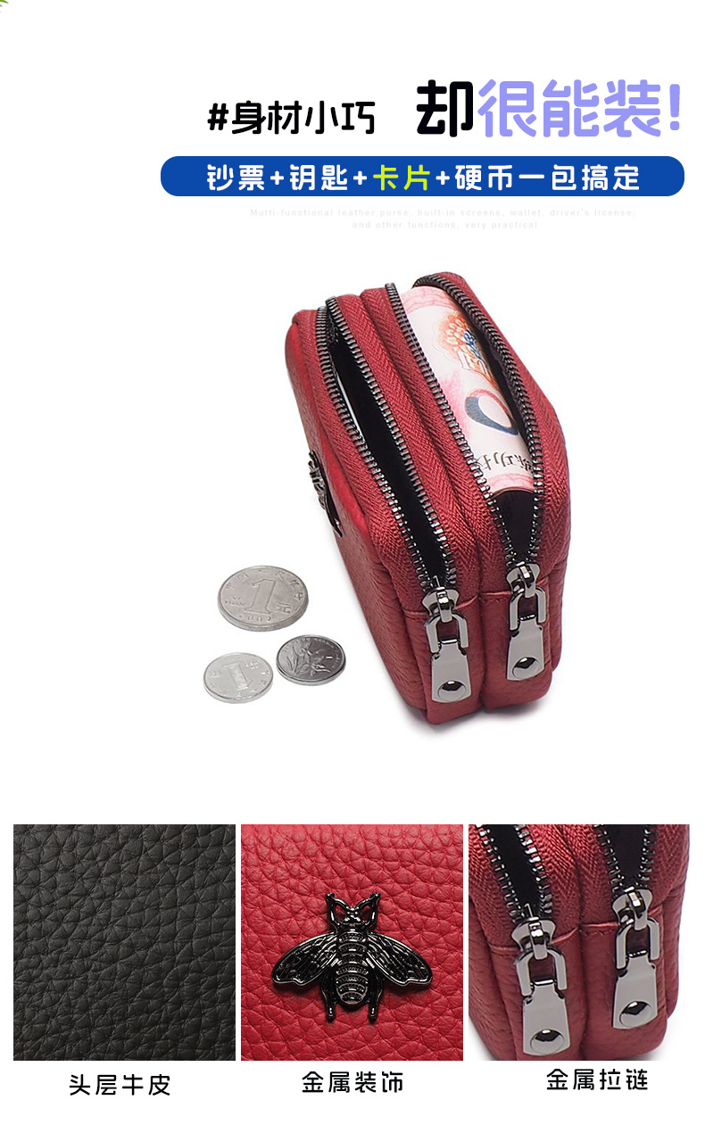 여성을위한 스팟 유럽과 미국 스타일의 정품 가죽 동전 지갑 더블 지퍼 소 가죽 키 가방 휴대용 귀여운 동전 보관 가방 도매스토어 가기
