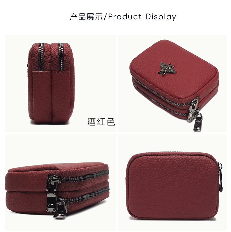 여성을위한 스팟 유럽과 미국 스타일의 정품 가죽 동전 지갑 더블 지퍼 소 가죽 키 가방 휴대용 귀여운 동전 보관 가방 도매