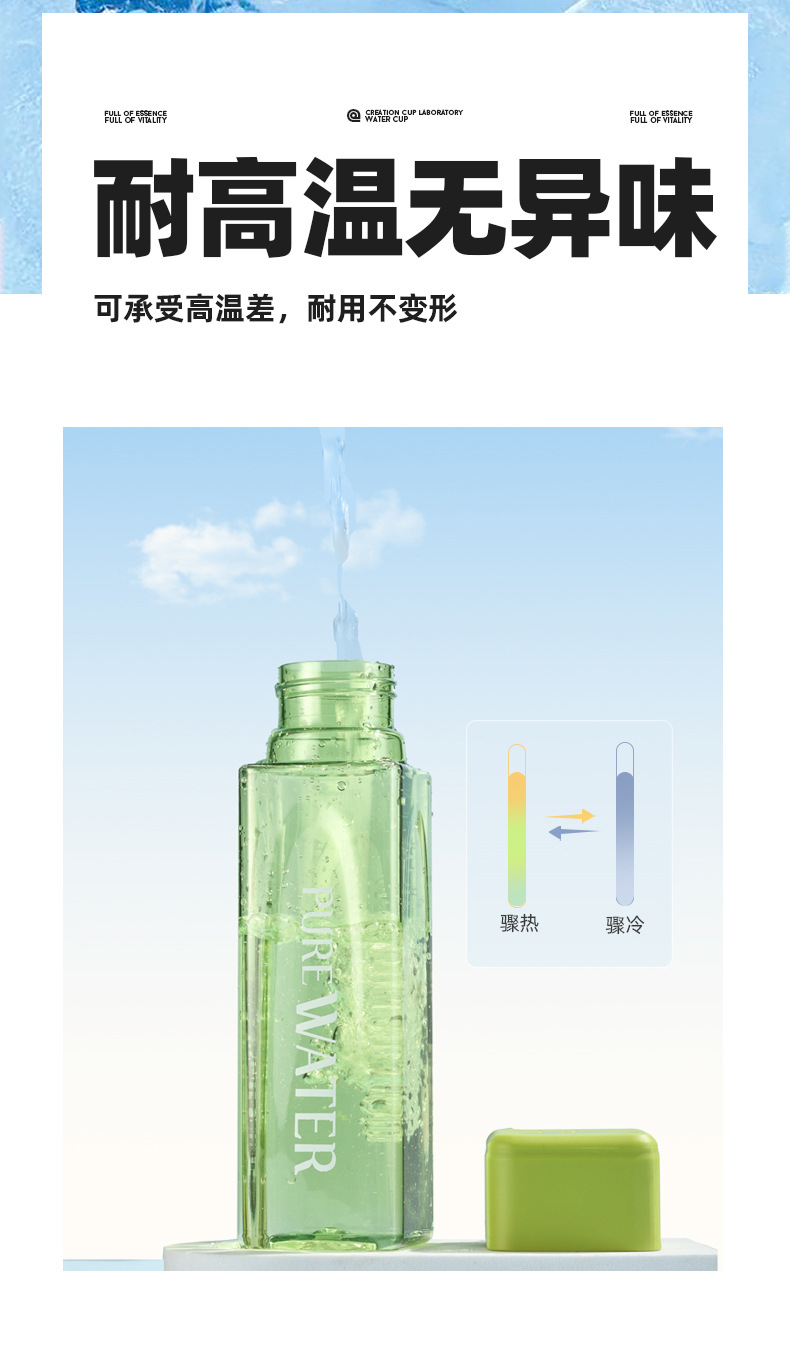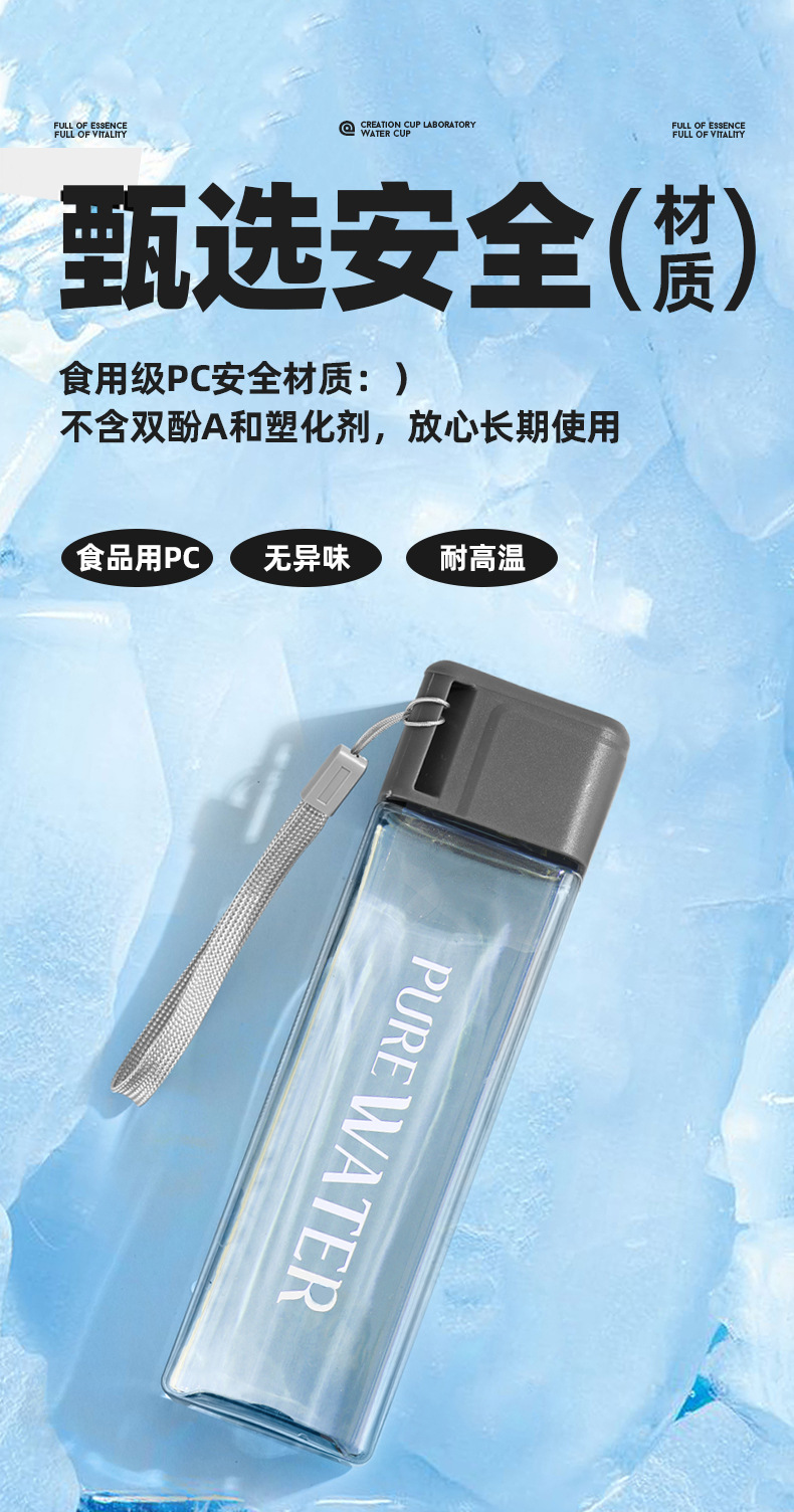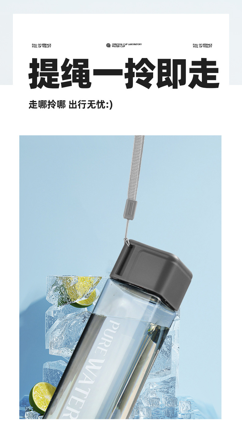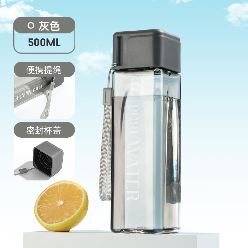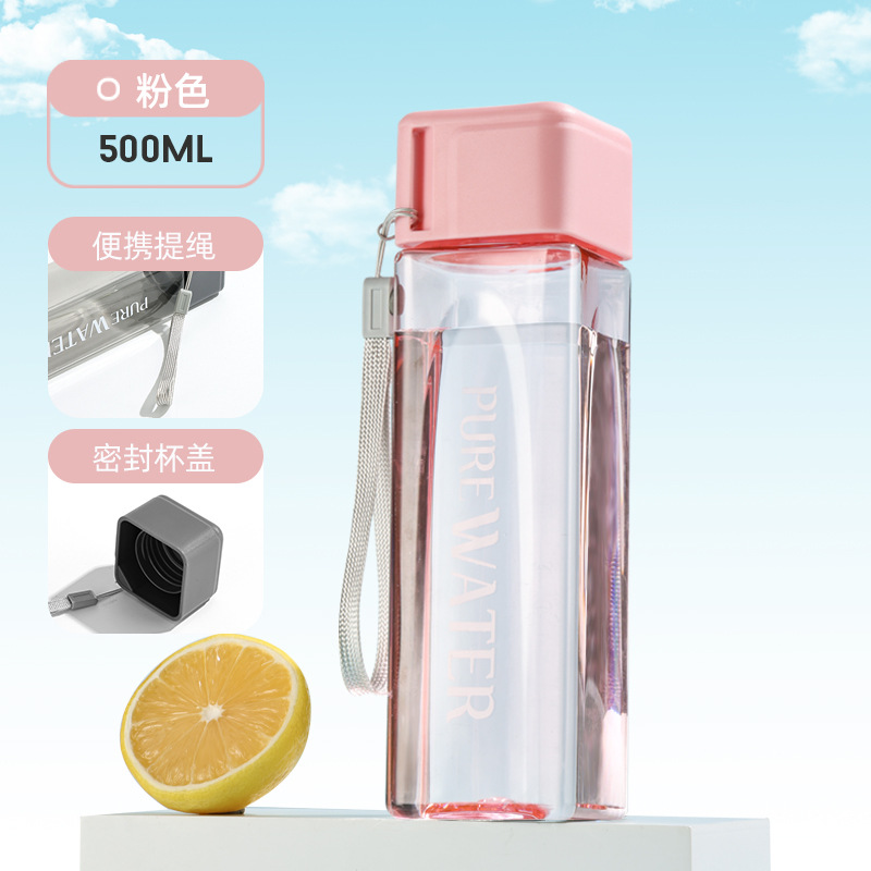 대용량 플라스틱 컵 도매 인기 창의적 심플 사각형 스포츠 물병 내구성 방수 투명 플라스틱 컵스토어 가기