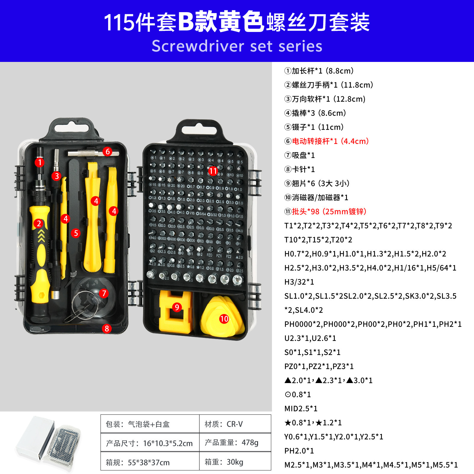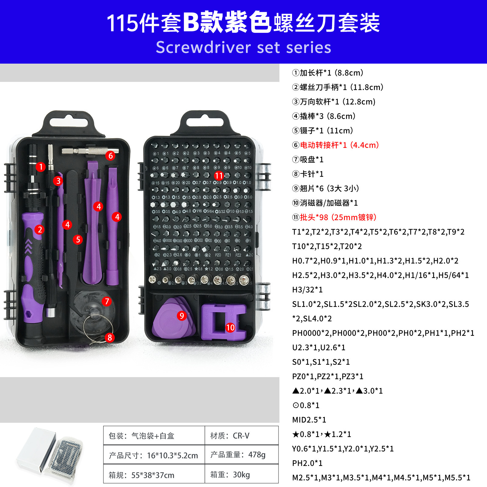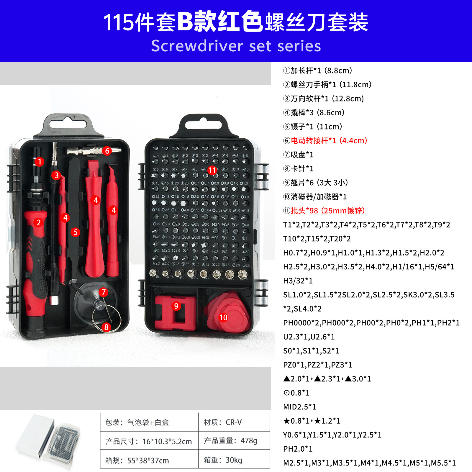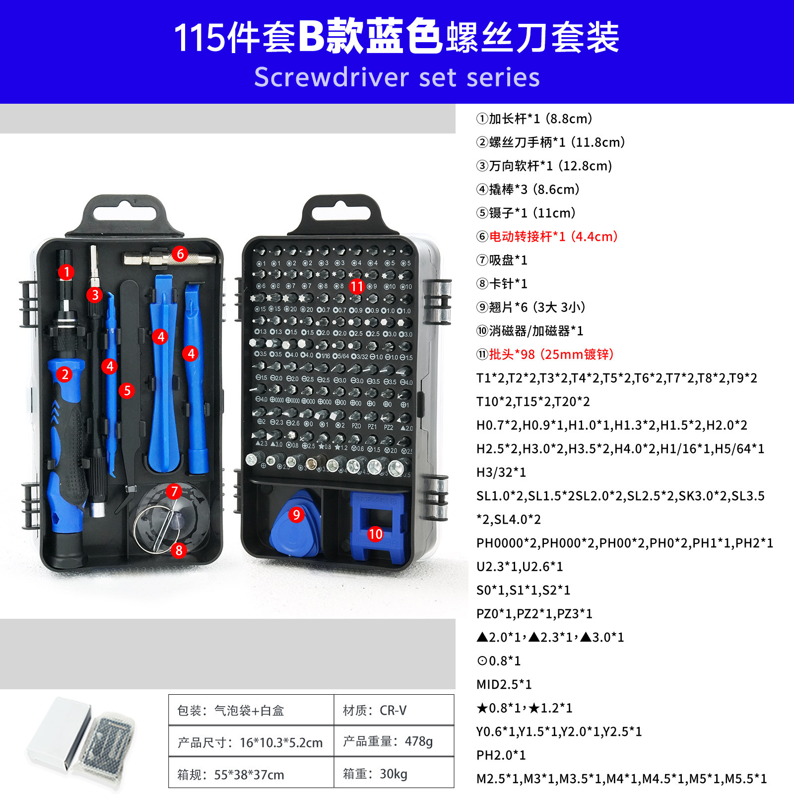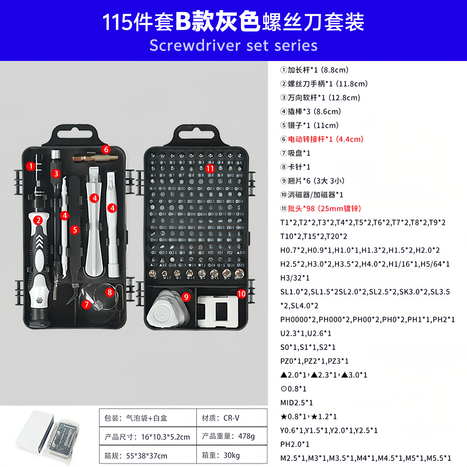 115-in-one 국경 시계 컴퓨터 휴대 전화 분해 기계 유지 보수 하드웨어 도구 드라이버 조합 세트 제조업체 배치