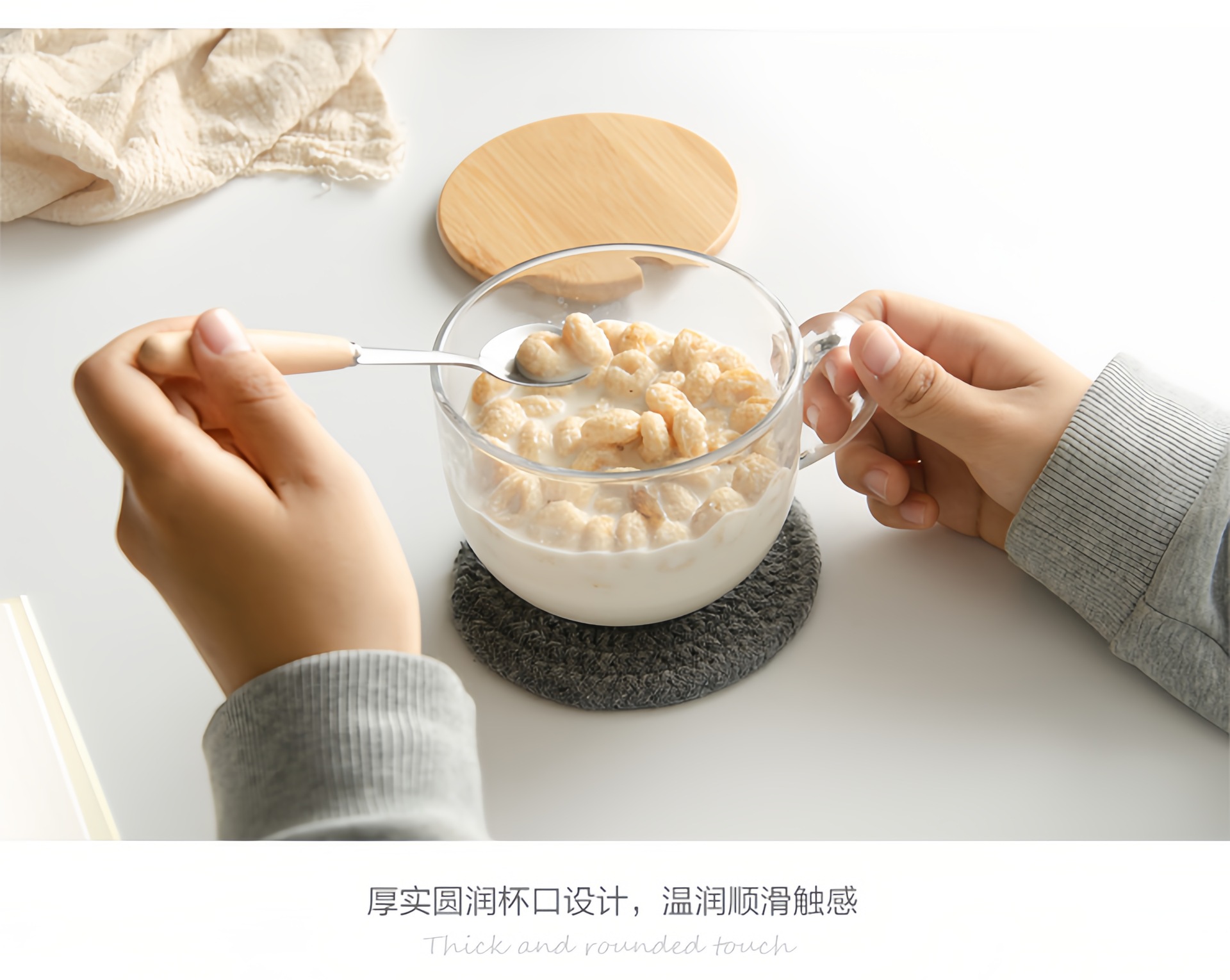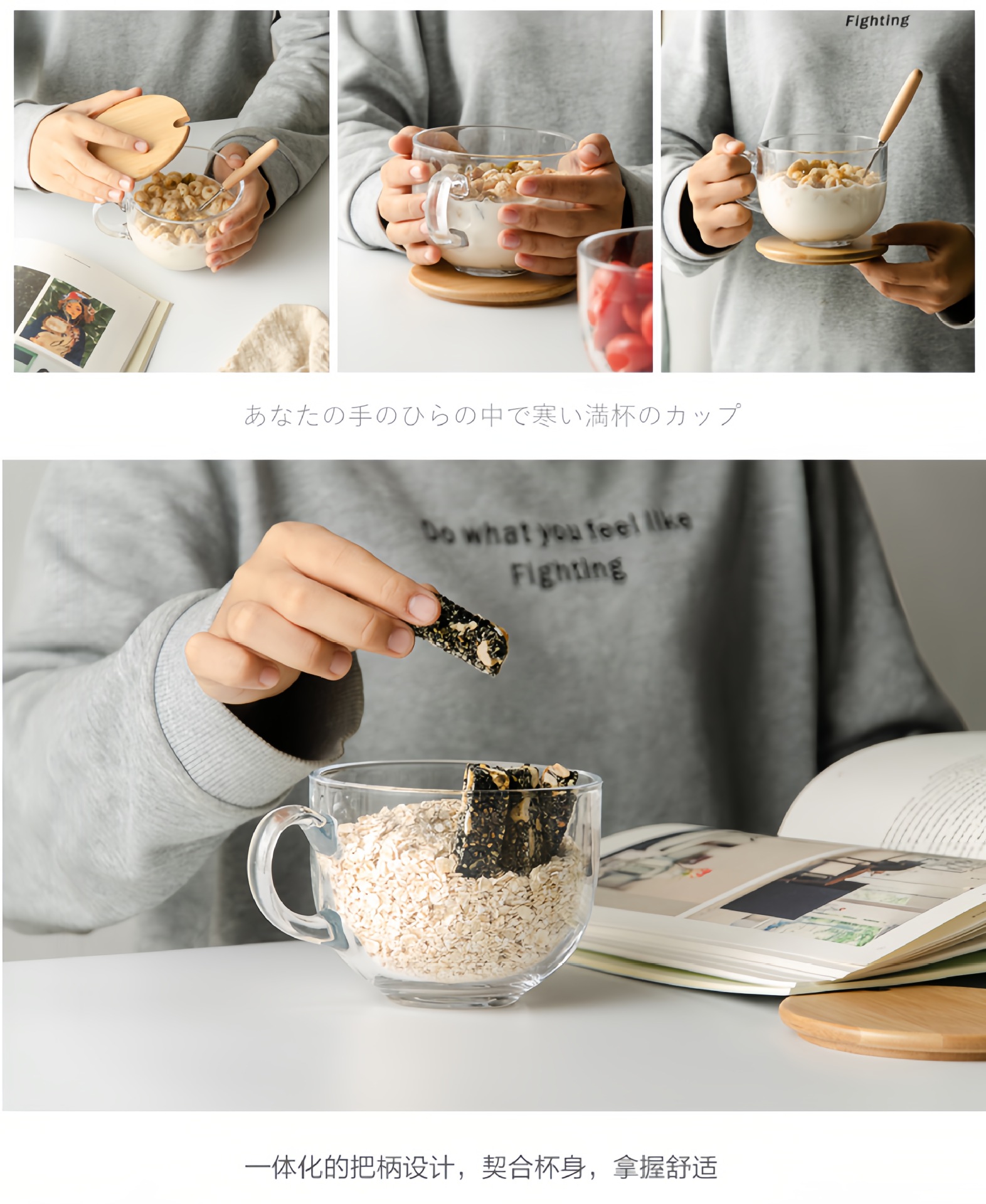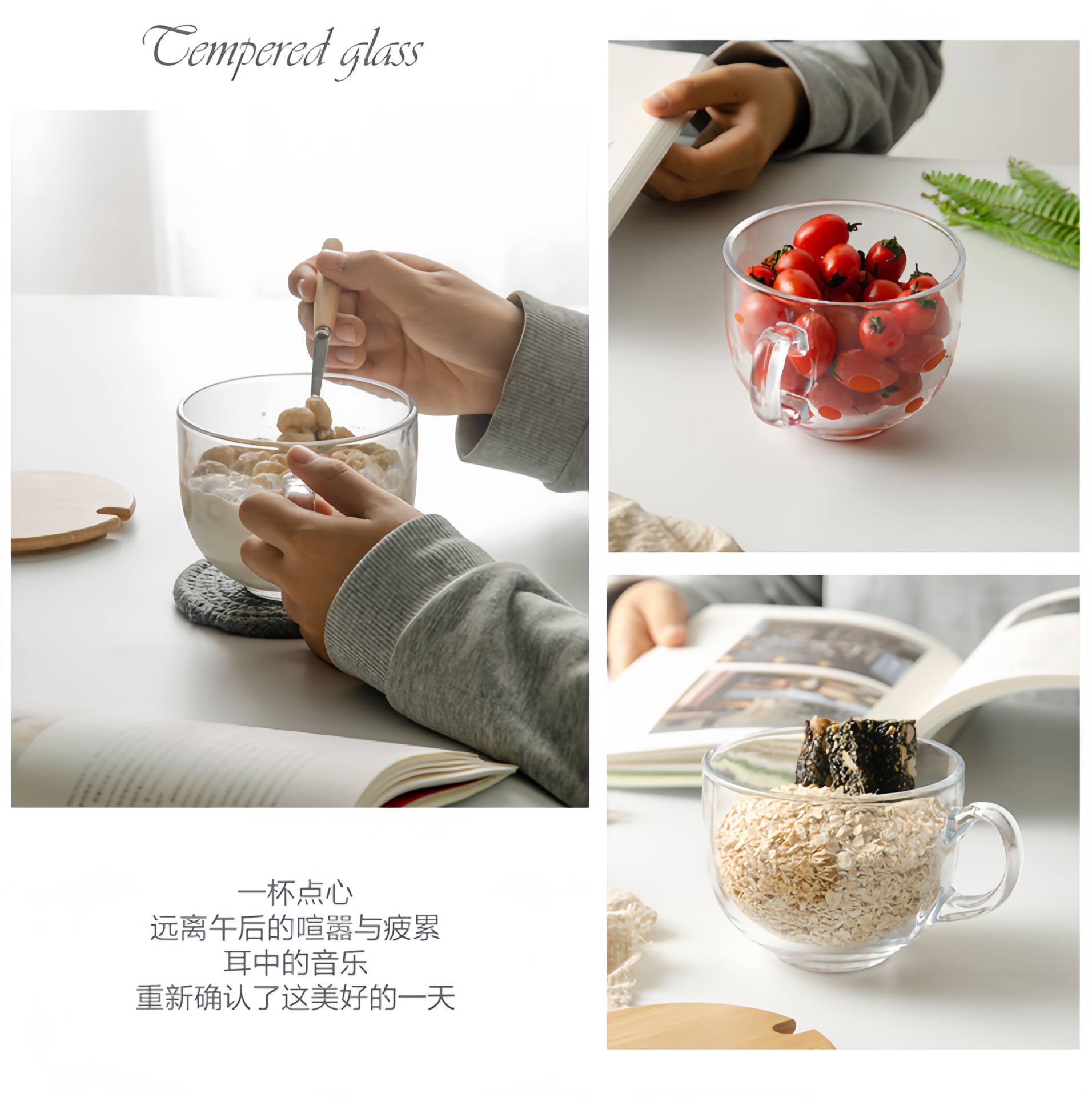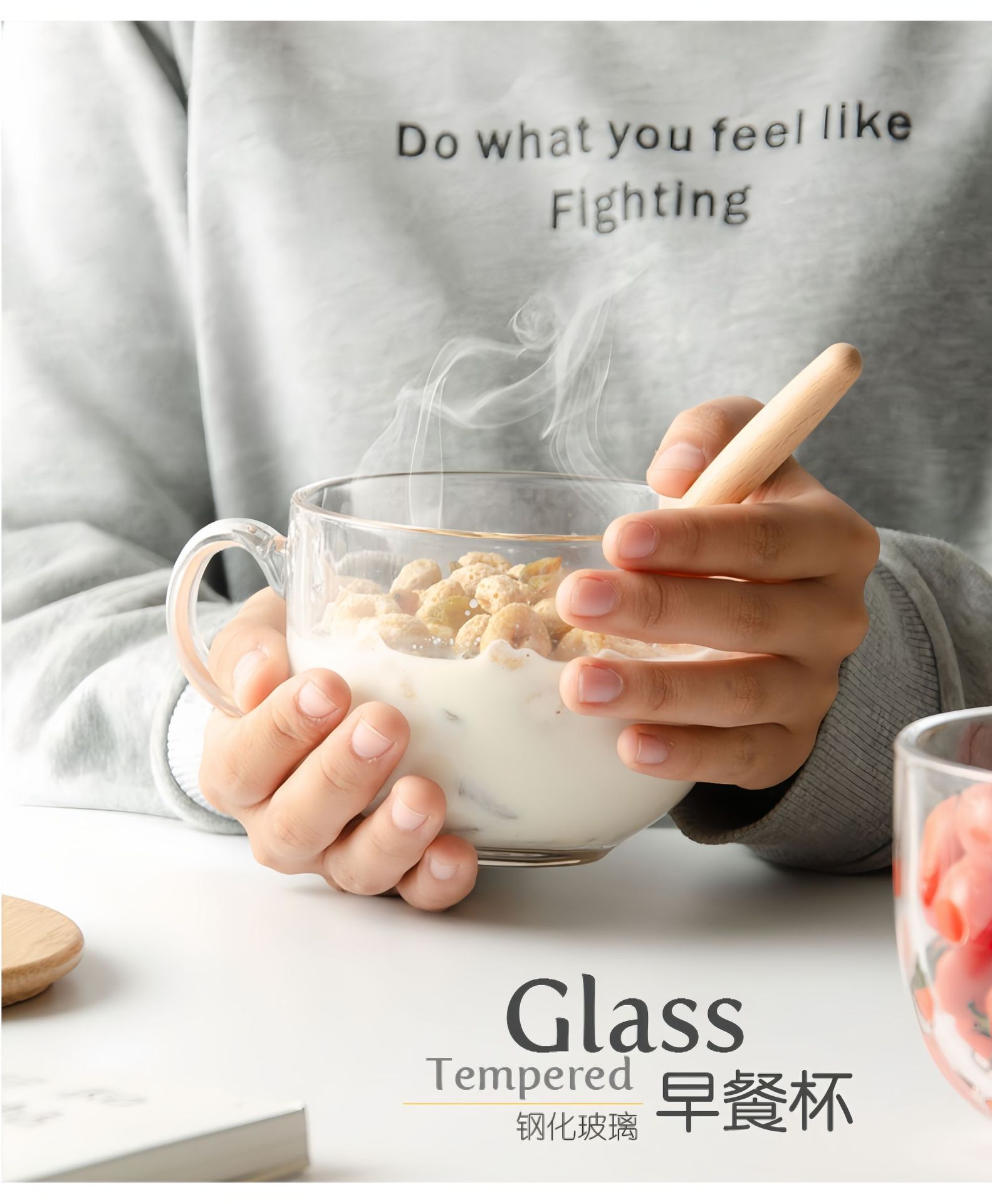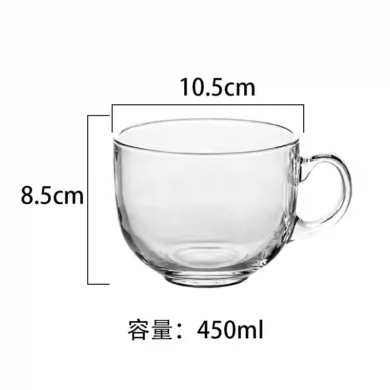 유리 커피잔 가정용 대용량 차잔 유리 물컵 요구르트 컵 유럽식 시리얼 컵 손잡이가 있는 아침 식사 컵