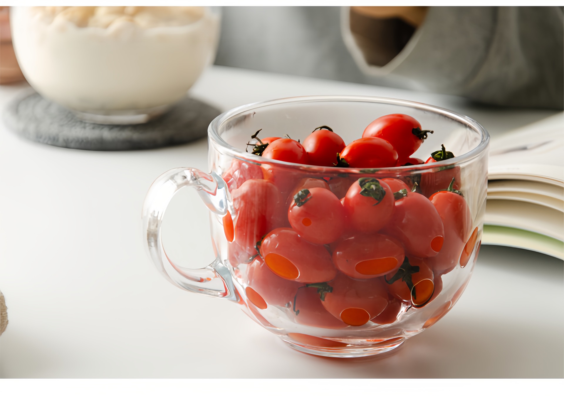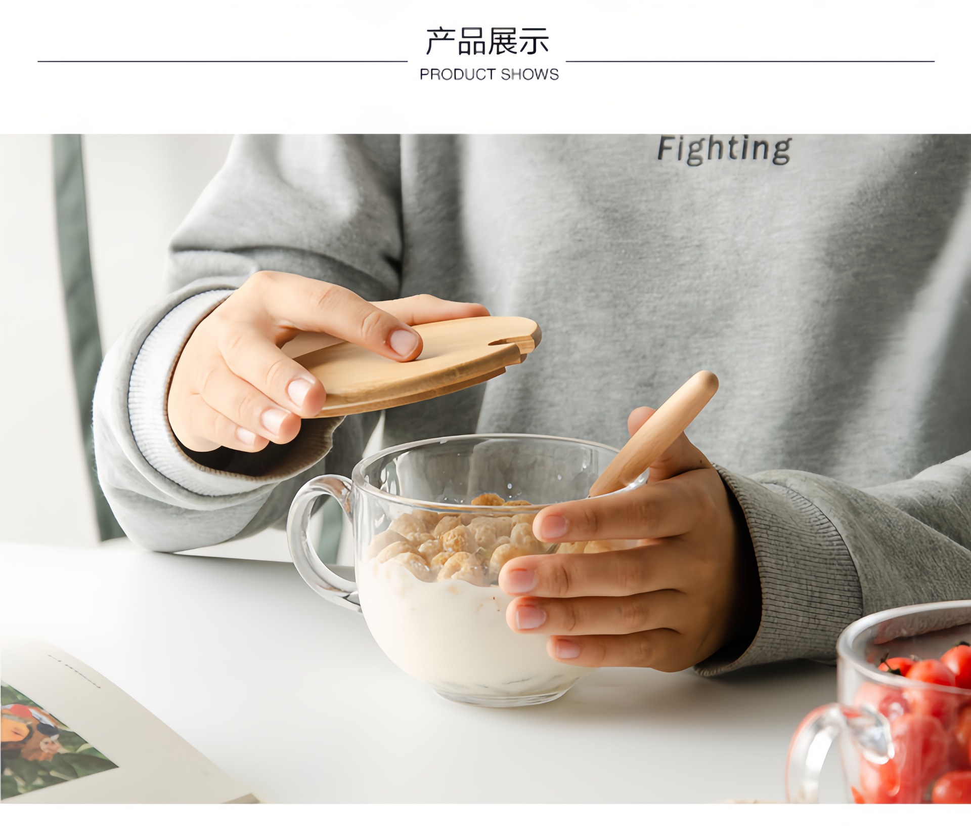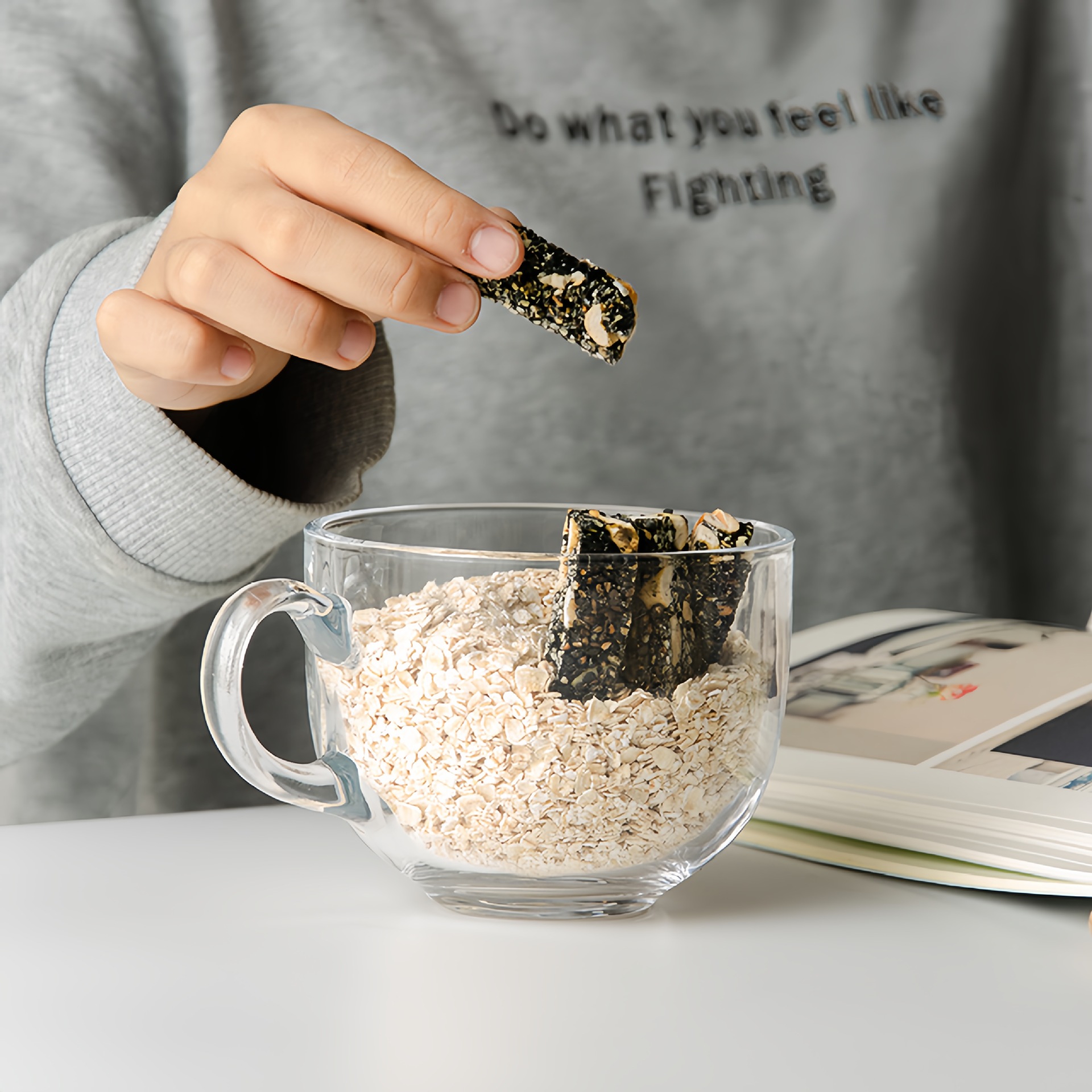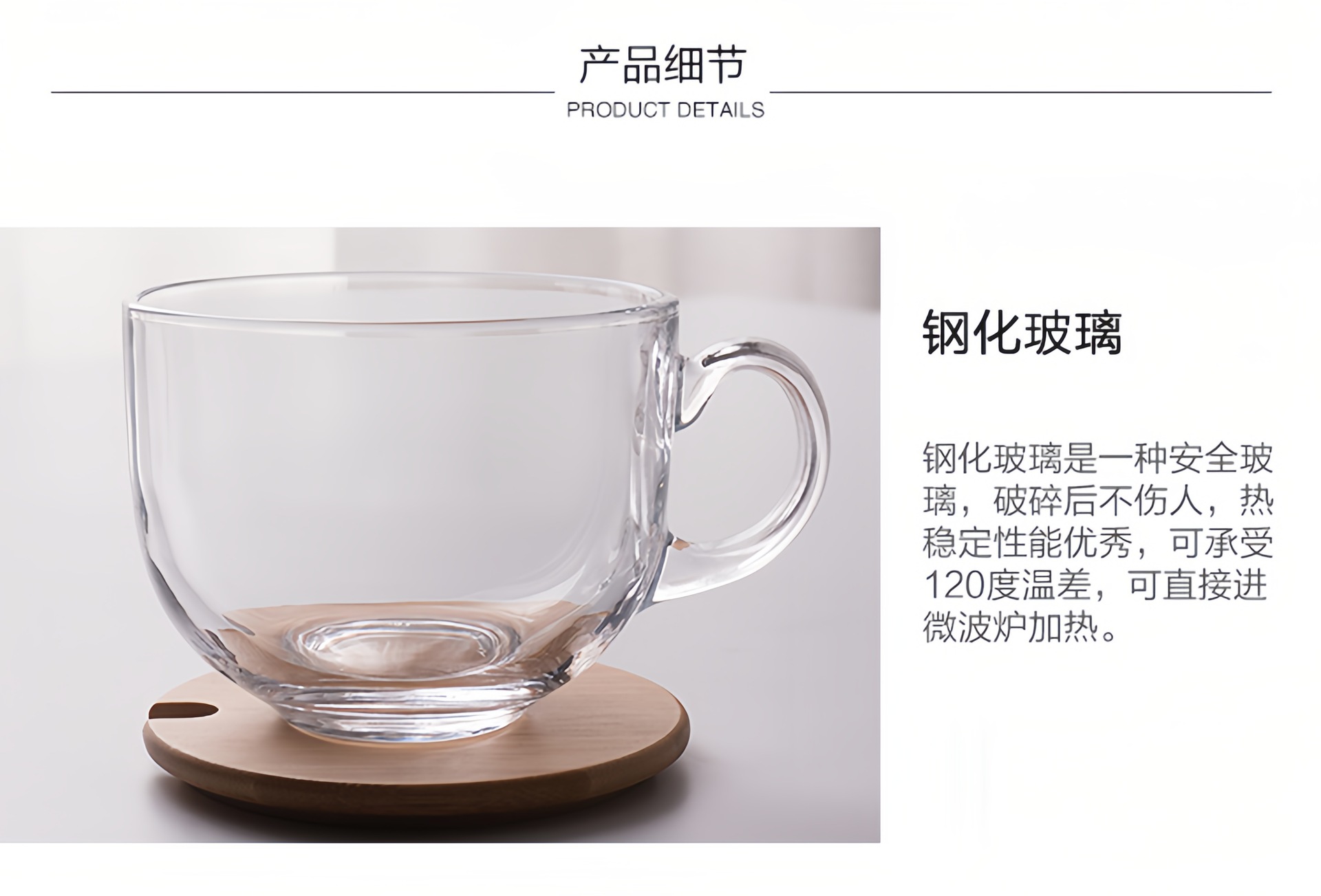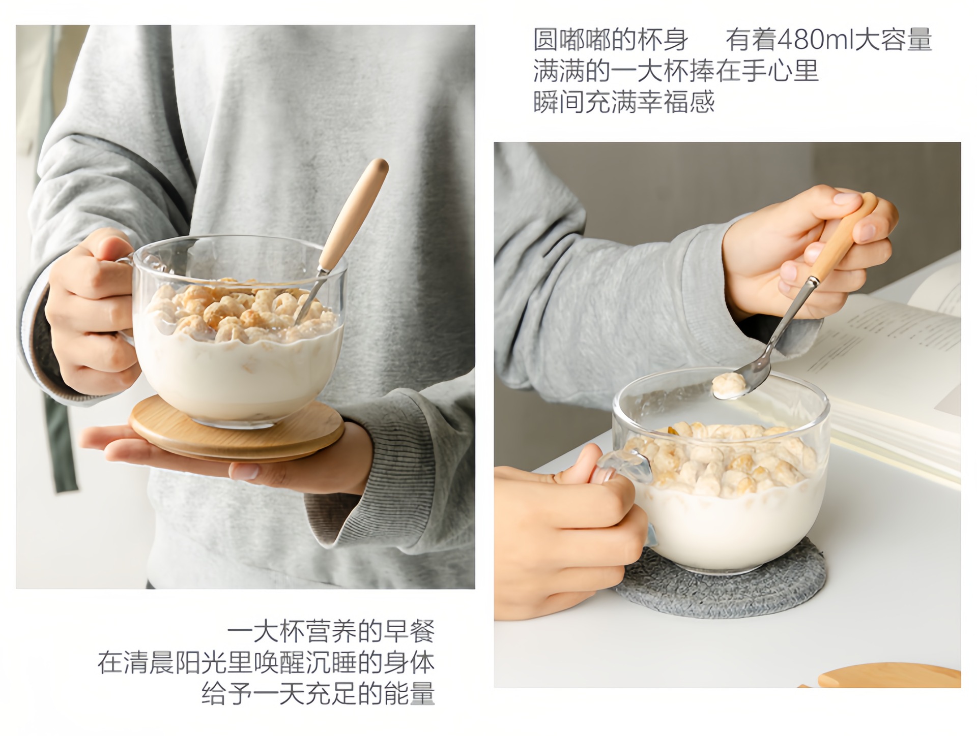 유리 커피잔 가정용 대용량 차잔 유리 물컵 요구르트 컵 유럽식 시리얼 컵 손잡이가 있는 아침 식사 컵