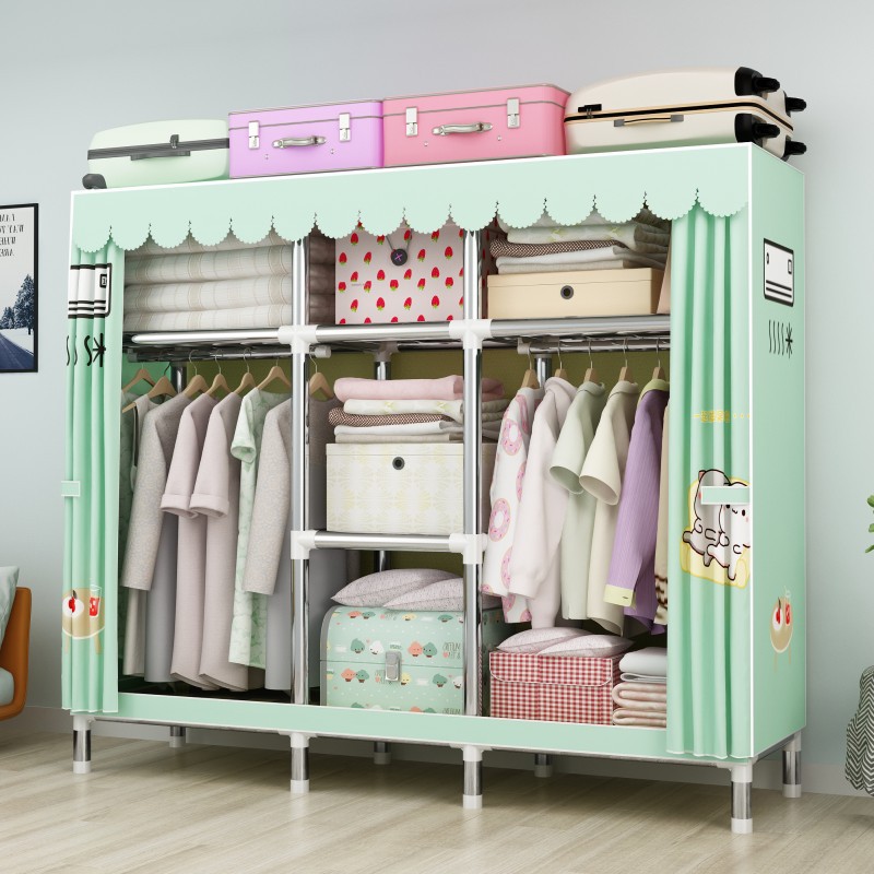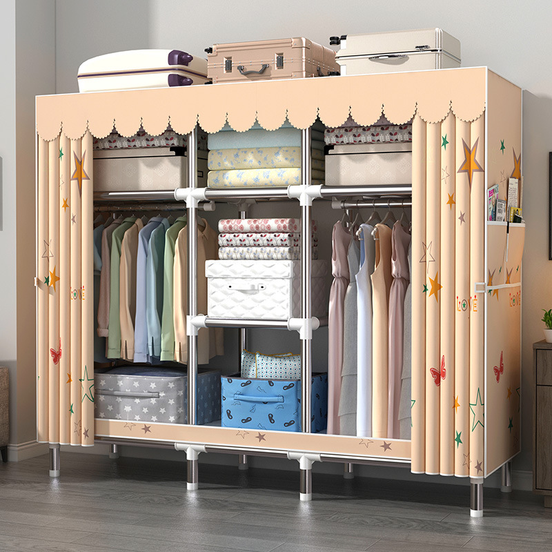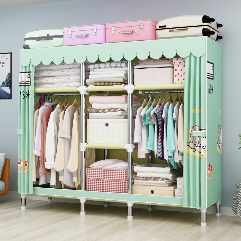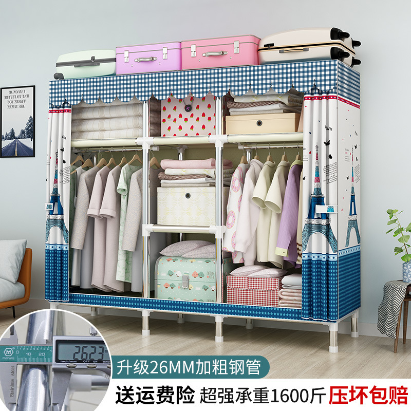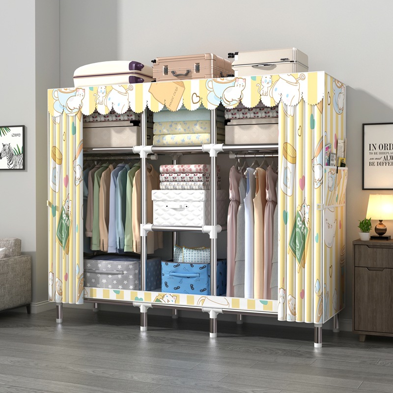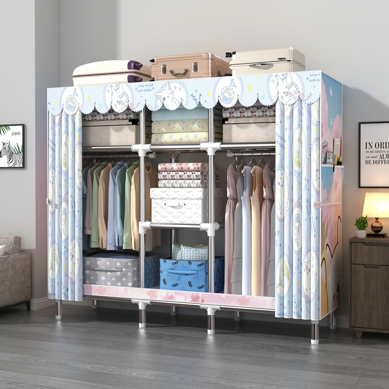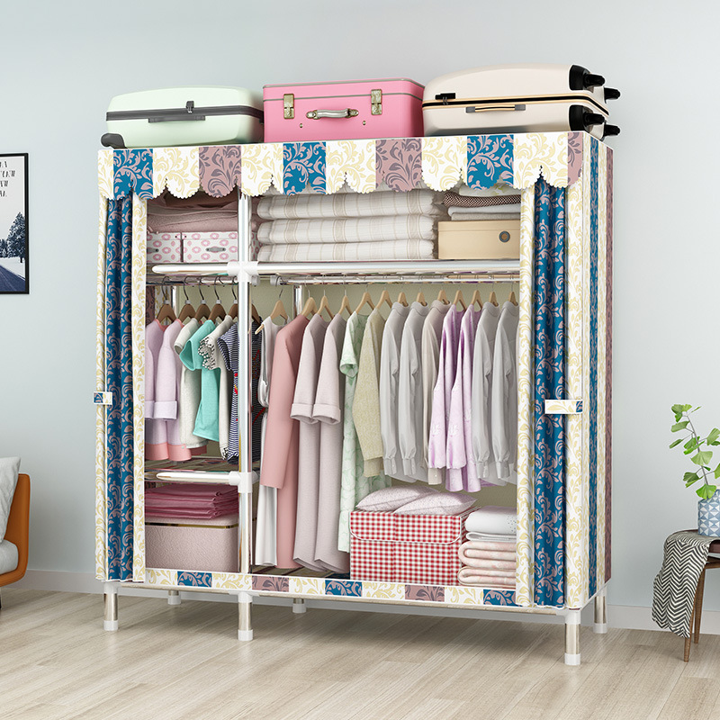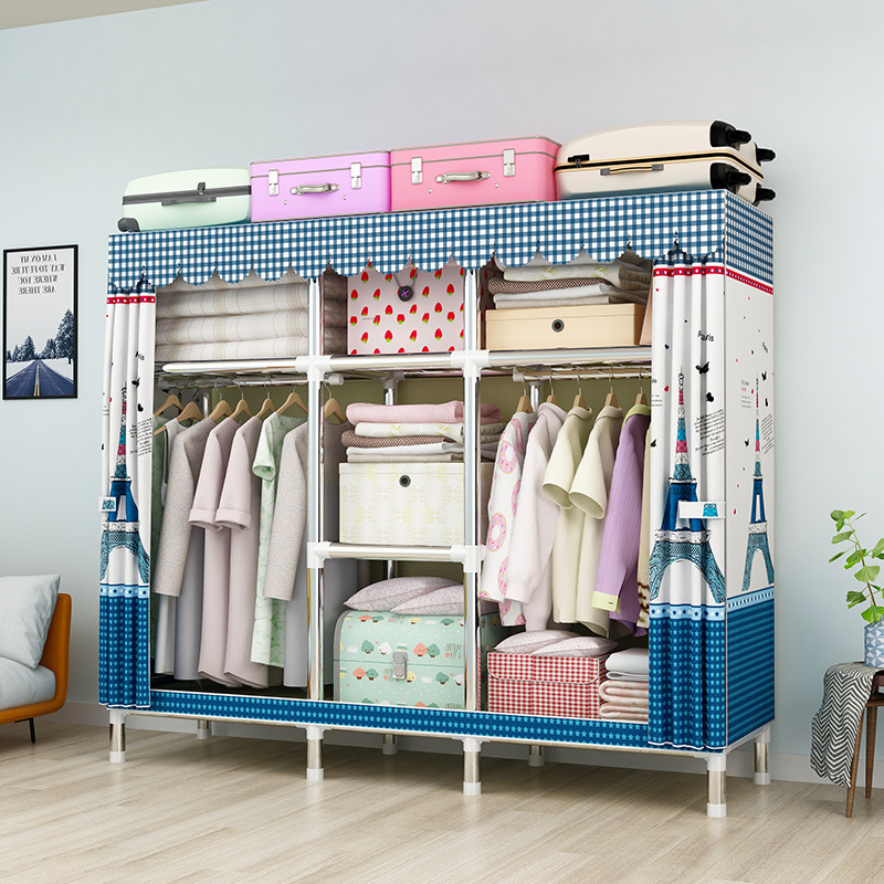 간단한 옷장 강철 파이프 대담한 강화 임대 룸 수납 옷장 패브릭 어셈블리 폴리 에스터 면 옷장 홈 침실스토어 가기