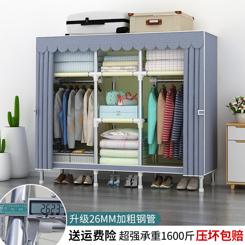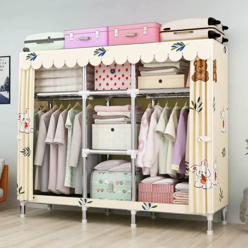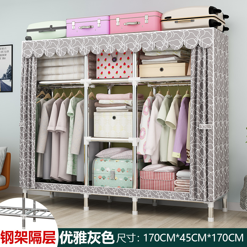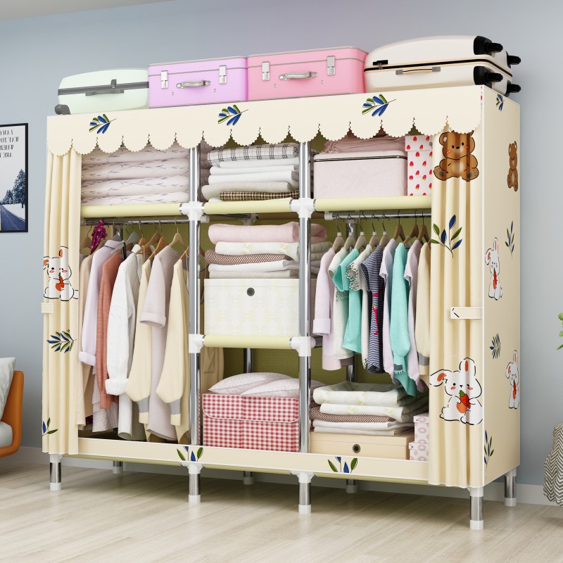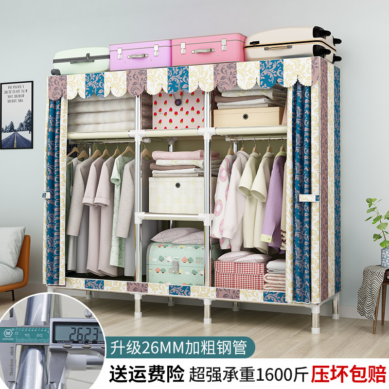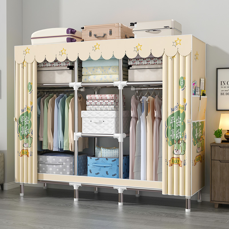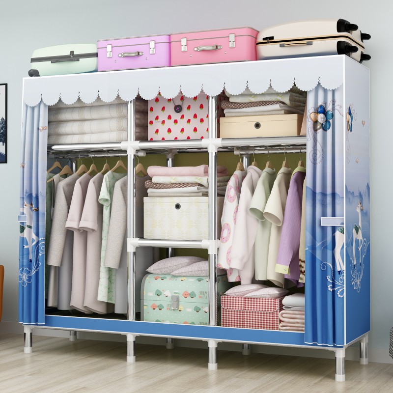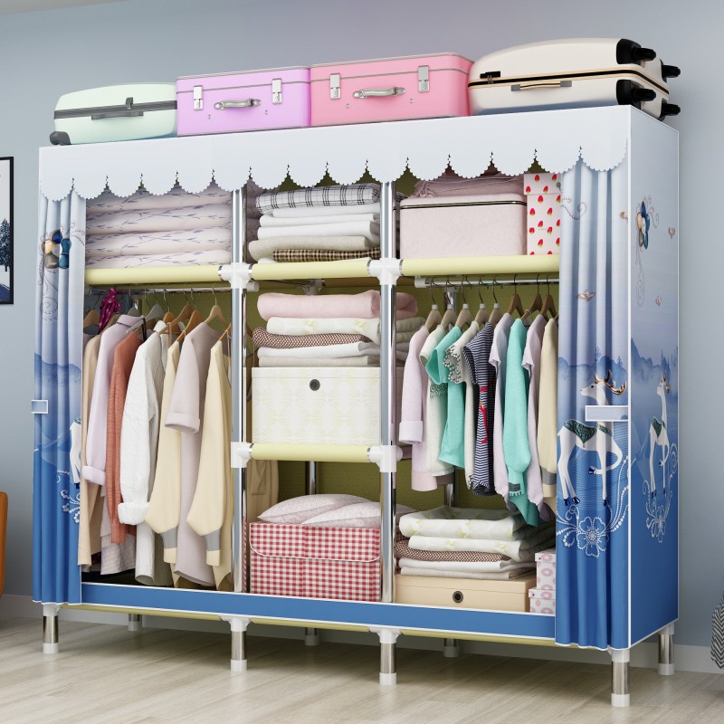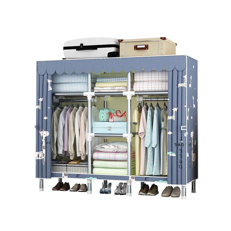 간단한 옷장 강철 파이프 대담한 강화 임대 룸 수납 옷장 패브릭 어셈블리 폴리 에스터 면 옷장 홈 침실스토어 가기