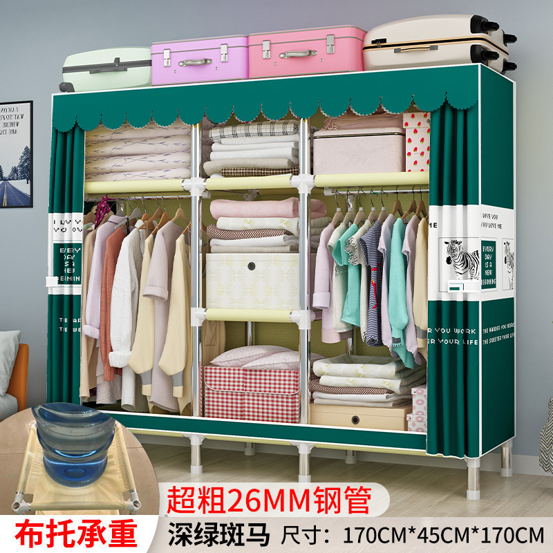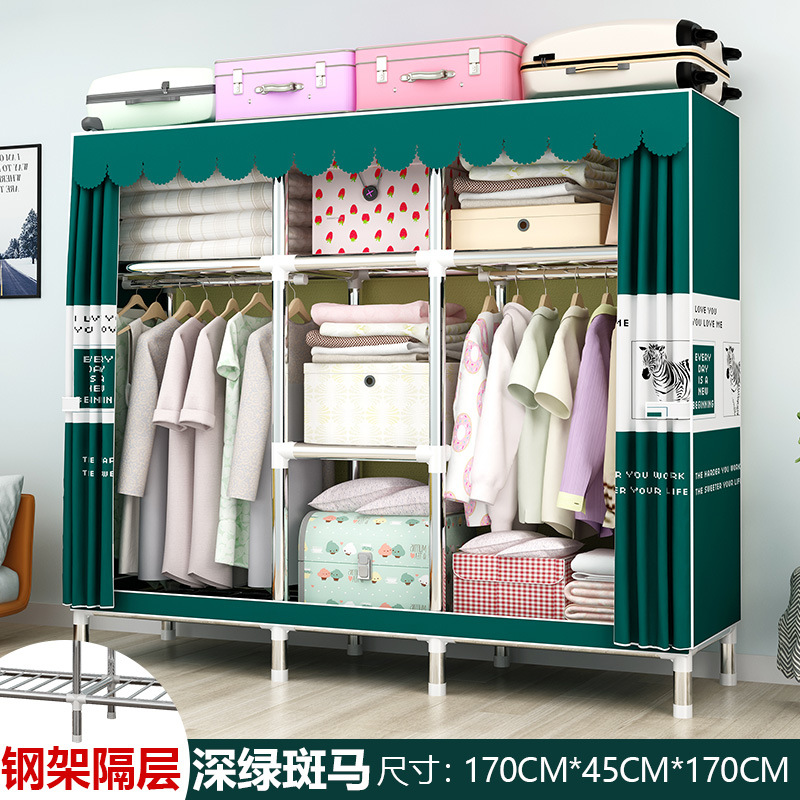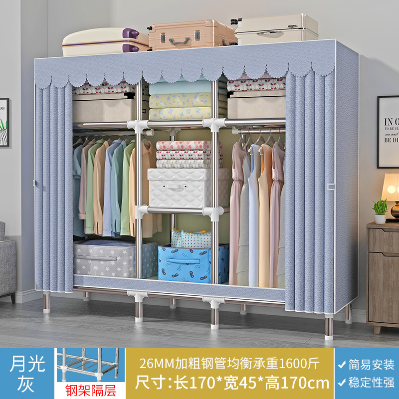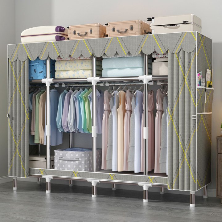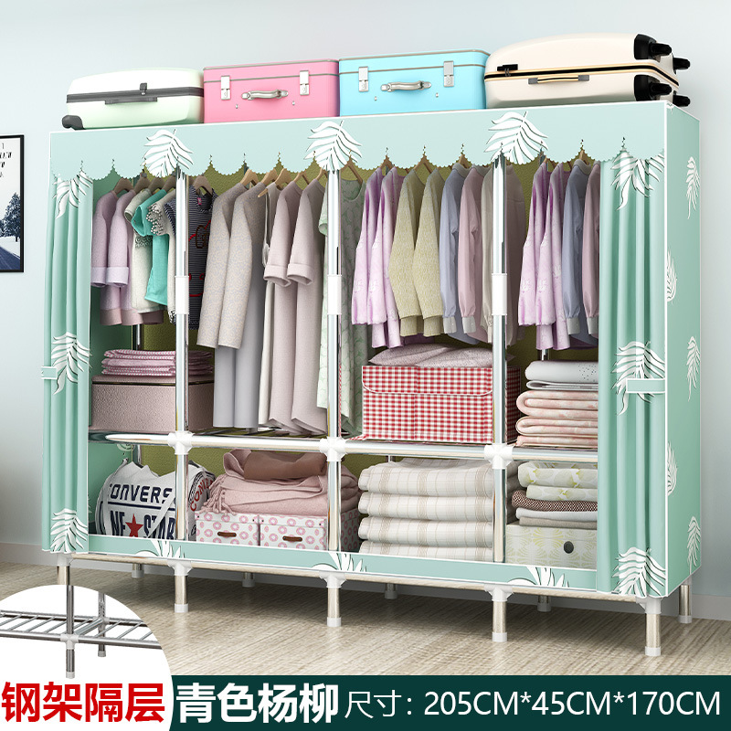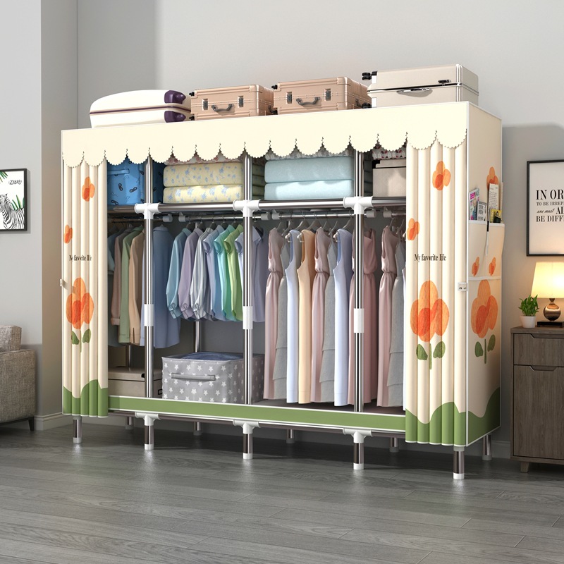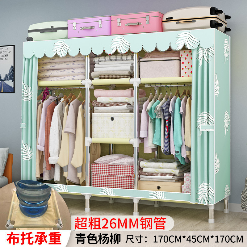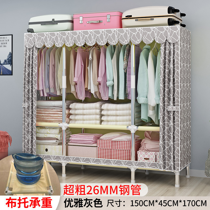간단한 옷장 강철 파이프 대담한 강화 임대 룸 수납 옷장 패브릭 어셈블리 폴리 에스터 면 옷장 홈 침실스토어 가기