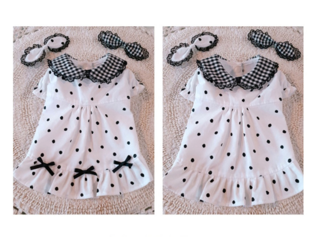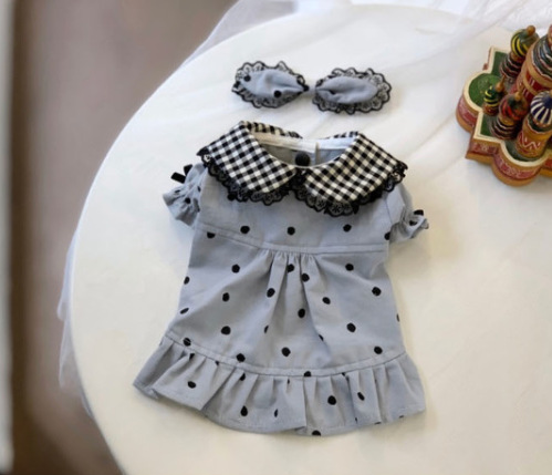 2020 여름 애완 동물 옷 새로운 애완 동물 고양이 개 애완 동물 격자 무늬 인형 칼라 폴카 도트 원피스
