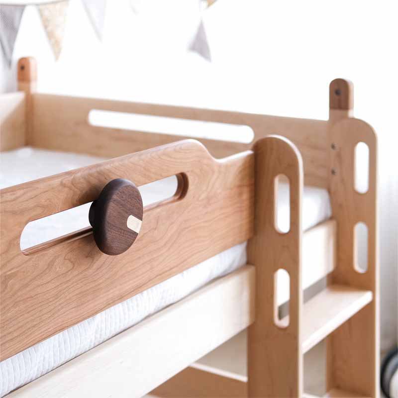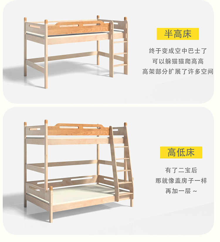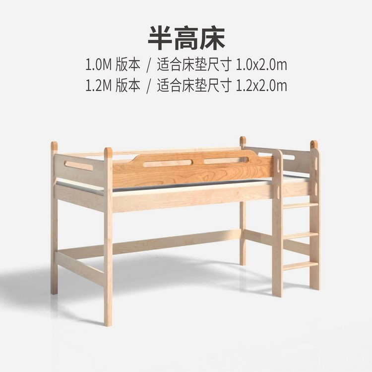공장에서 배송되는 싱글 미드 하이 레이저 침대 가드 레일이있는 하이 로우 하프 높이 침대 하우스 메이플 솔리드 우드 어린이 침대 트리 하우스 침대