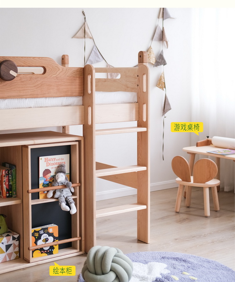 공장에서 배송되는 싱글 미드 하이 레이저 침대 가드 레일이있는 하이 로우 하프 높이 침대 하우스 메이플 솔리드 우드 어린이 침대 트리 하우스 침대스토어 가기