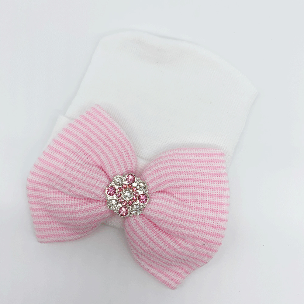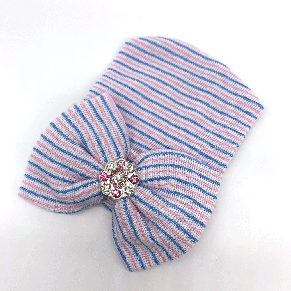 유럽과 미국 아기 태아 모자 큰 나비 빛나는 다이아몬드 줄무늬 어린이 풀오버 모자 신생아 니트 모자 아기 모자