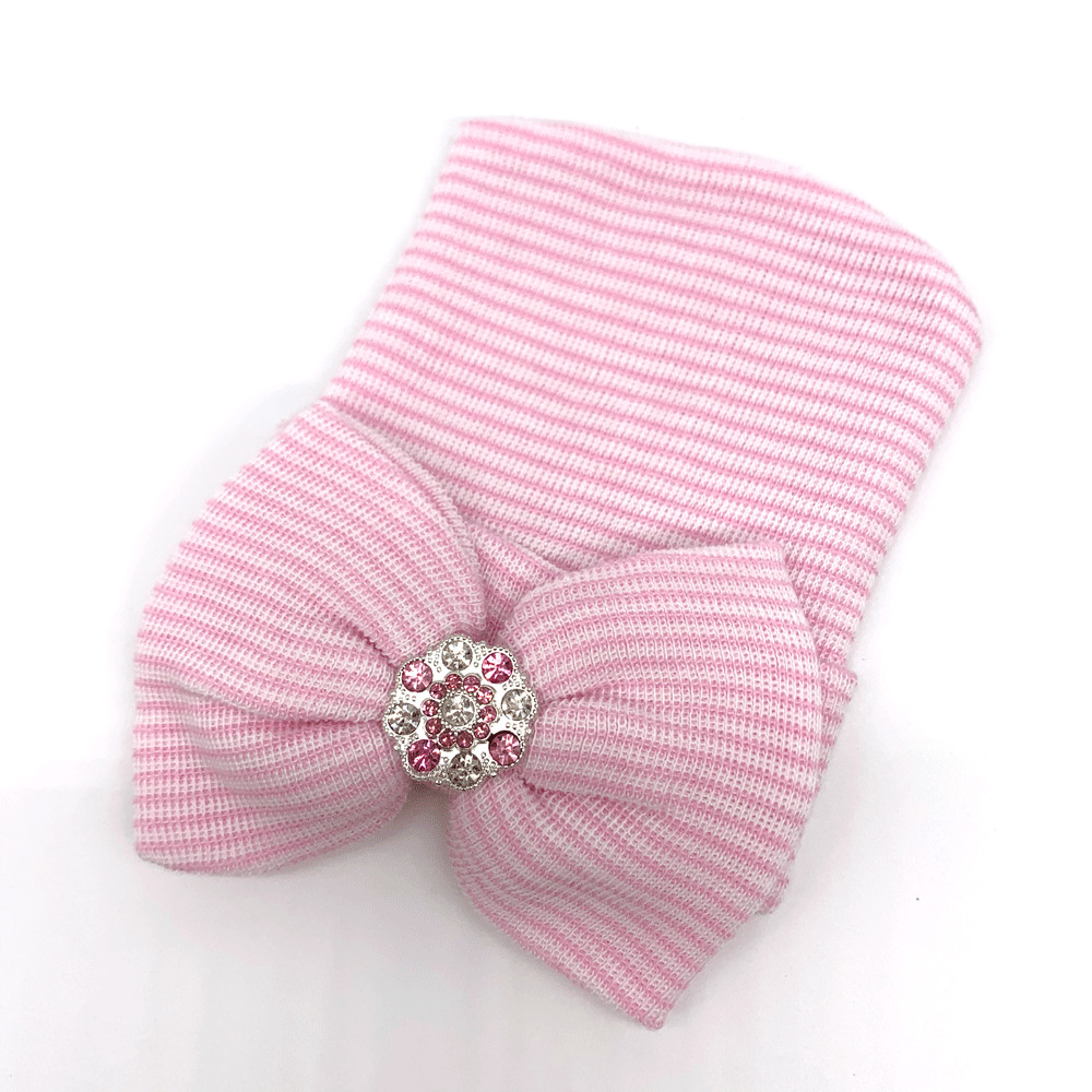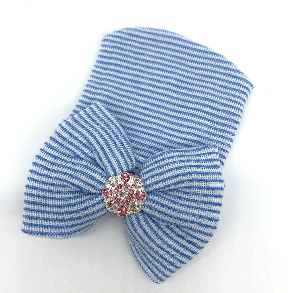 유럽과 미국 아기 태아 모자 큰 나비 빛나는 다이아몬드 줄무늬 어린이 풀오버 모자 신생아 니트 모자 아기 모자스토어 가기