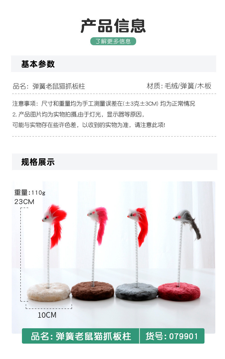 고양이 발톱 장난감 라운드 플러시 마우스 봄 고양이 등반 프레임 도매 작은 고양이 긁는 포스트 긁힘 방지 및 내마모성 고양이 나무스토어 가기