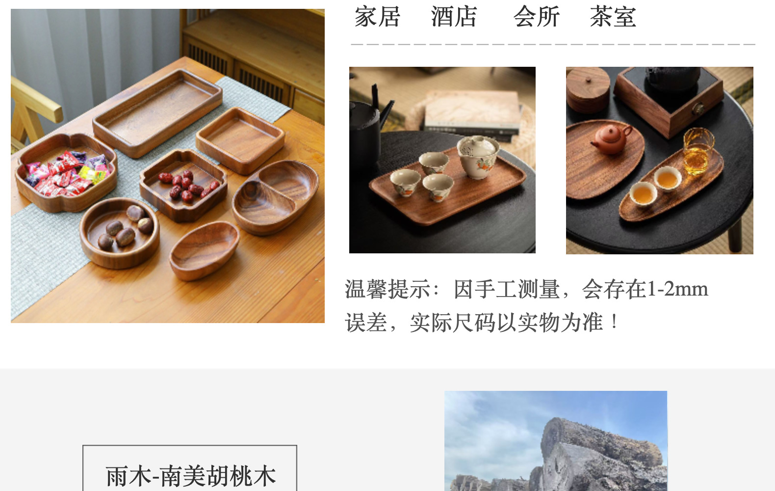 호두나무 트레이 100개, 공장 직판, 일본식 직사각형 차 트레이, 과일 트레이, 피자 트레이, 호텔용 나무 트레이스토어 가기