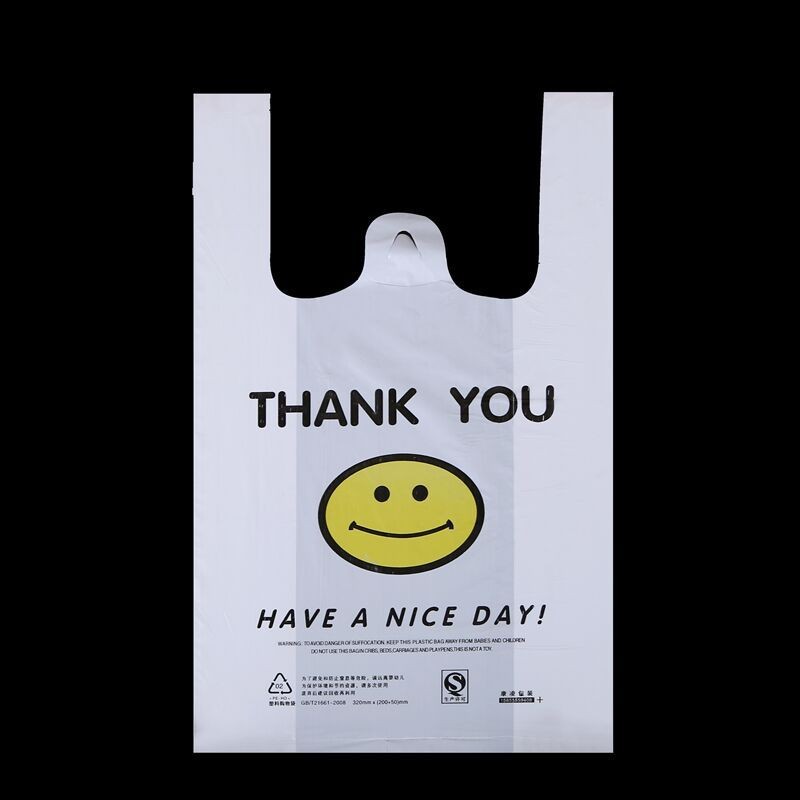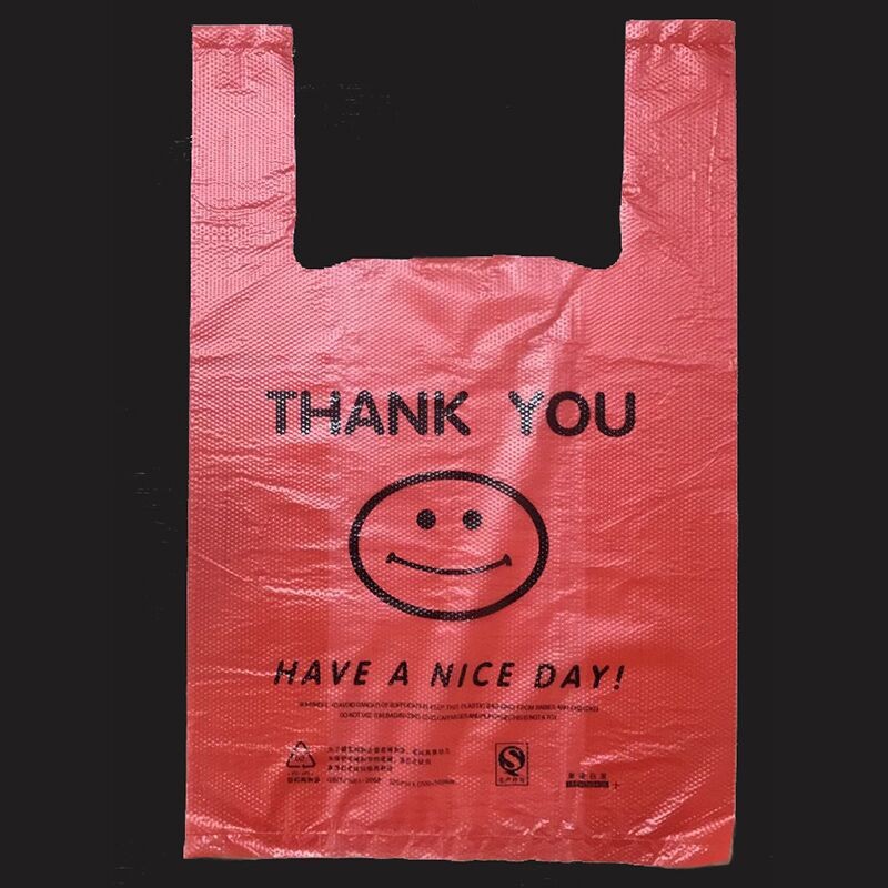 플라스틱 포장 가방 쇼핑 투명 포장 편리한 스마일 레드 일회용 슈퍼마켓 식품 조끼 토트 백