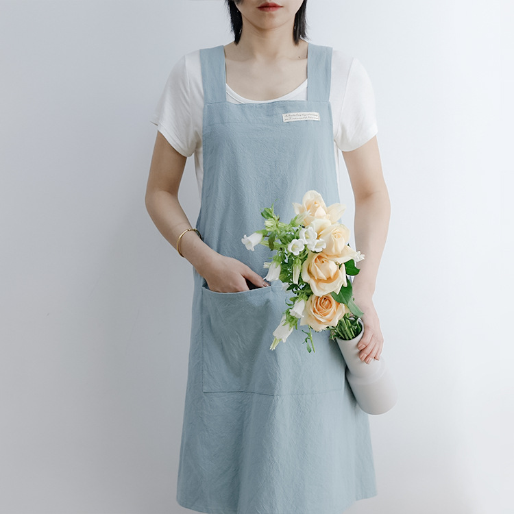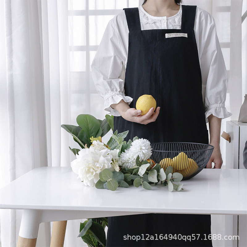 신면 앞치마 단색 일본과 한국 심플 워시 면 와이드 숄더 스트랩 작업복 주방 플로리스트 홈 앞치마 도매스토어 가기