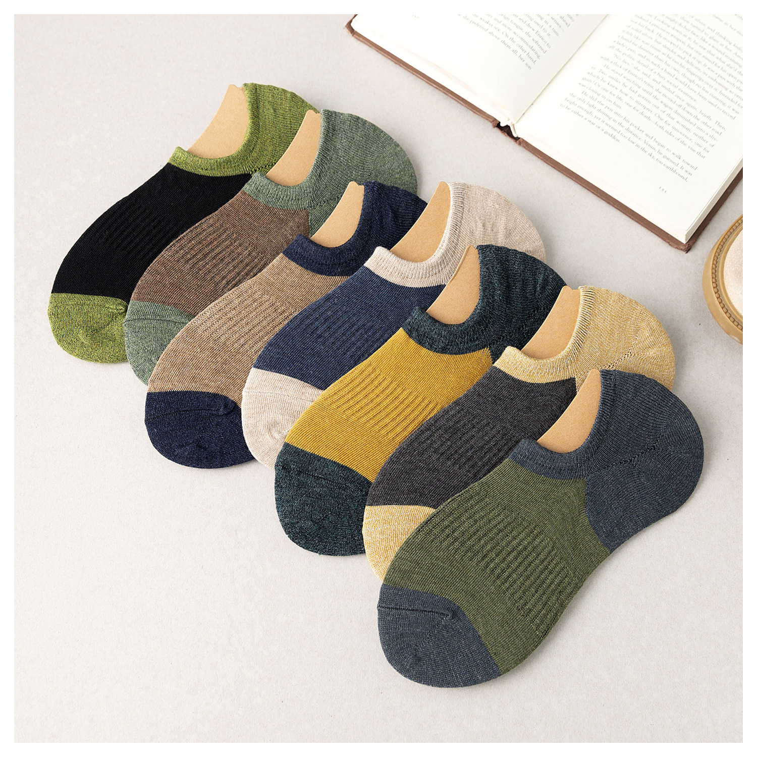 새로운 여름 남성 양말 컬러 매칭 캐주얼 보트 양말 복고풍 평행 양말 남성용 보이지 않는 실리콘 미끄럼 방지 양말 도매스토어 가기