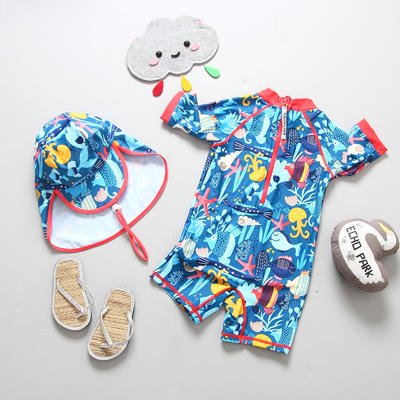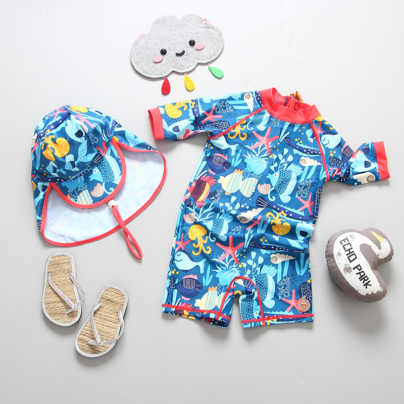 영국 어린이 수영복 소년 귀여운 원피스 만화 태양 보호 속건 아기 아기 수영복 바지 서핑 세트스토어 가기