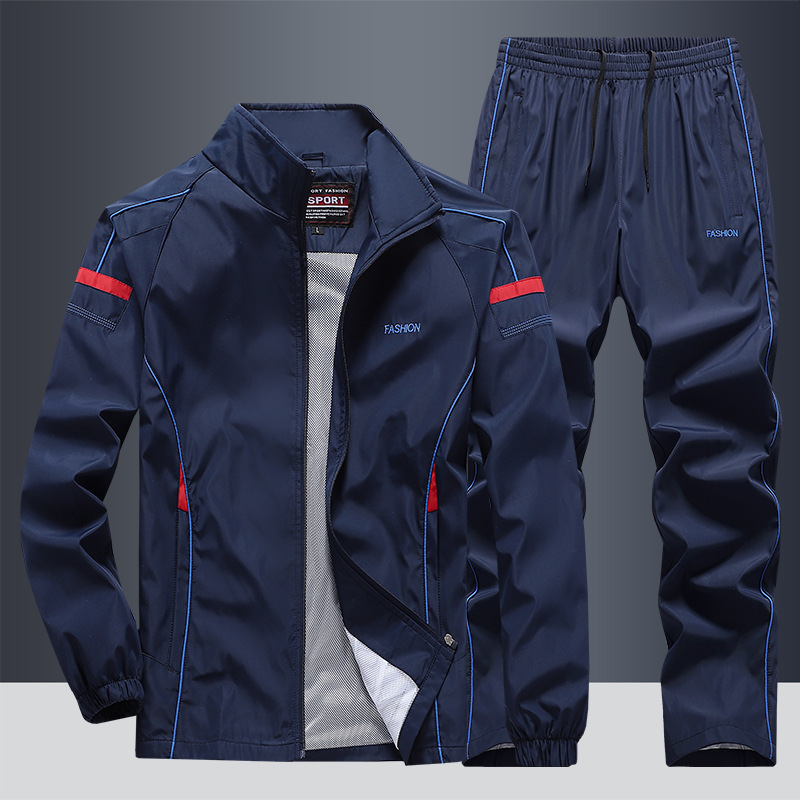 크로스 보더 봄과 가을 새로운 남성 레저 스포츠 세트 중년 및 노인 러닝 스포츠웨어 투피스 아빠 복장