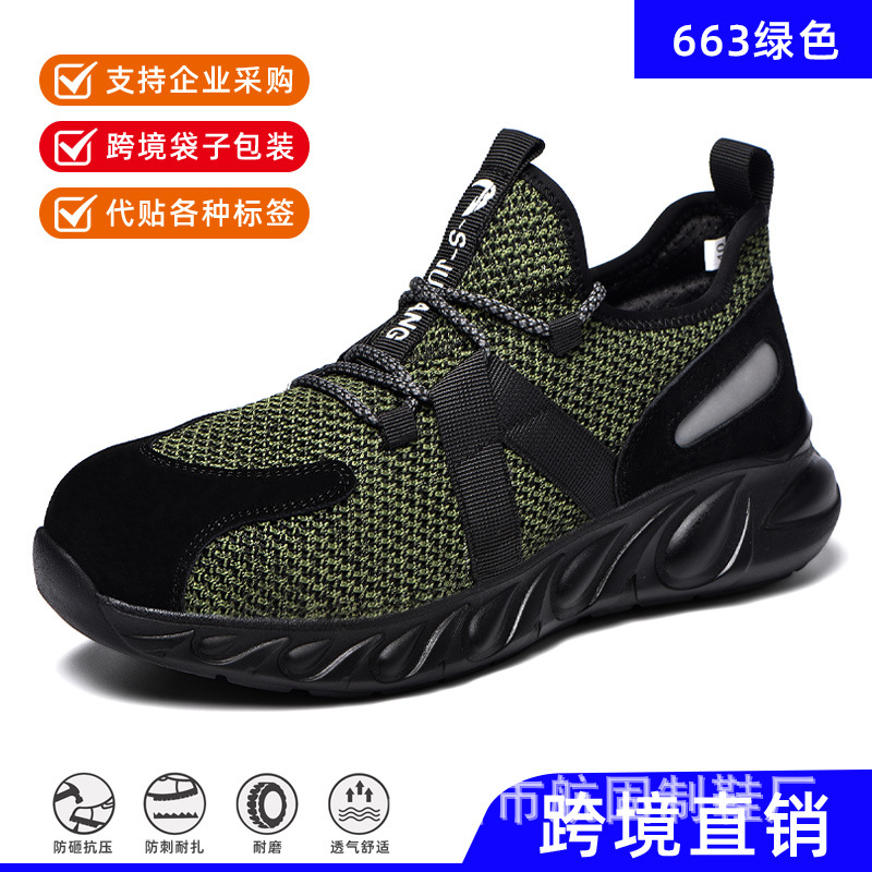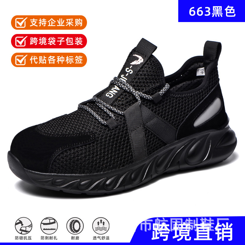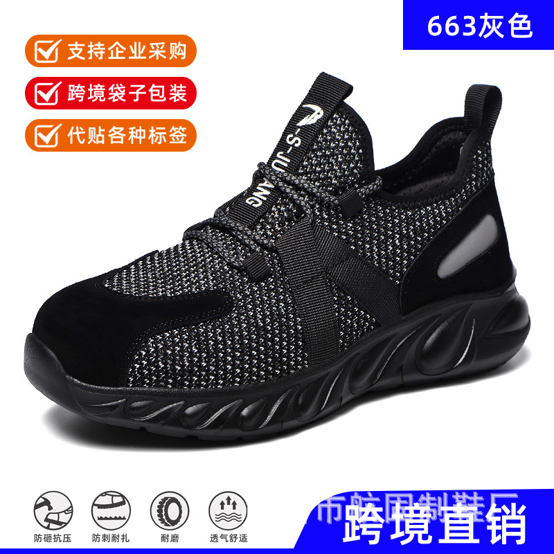 새로운 국경 안전 신발 야외 사계절 편안한 경량 강철 발가락 작업 신발 스매싱 방지 및 펑크 방지 노동 보호 신발 남성용