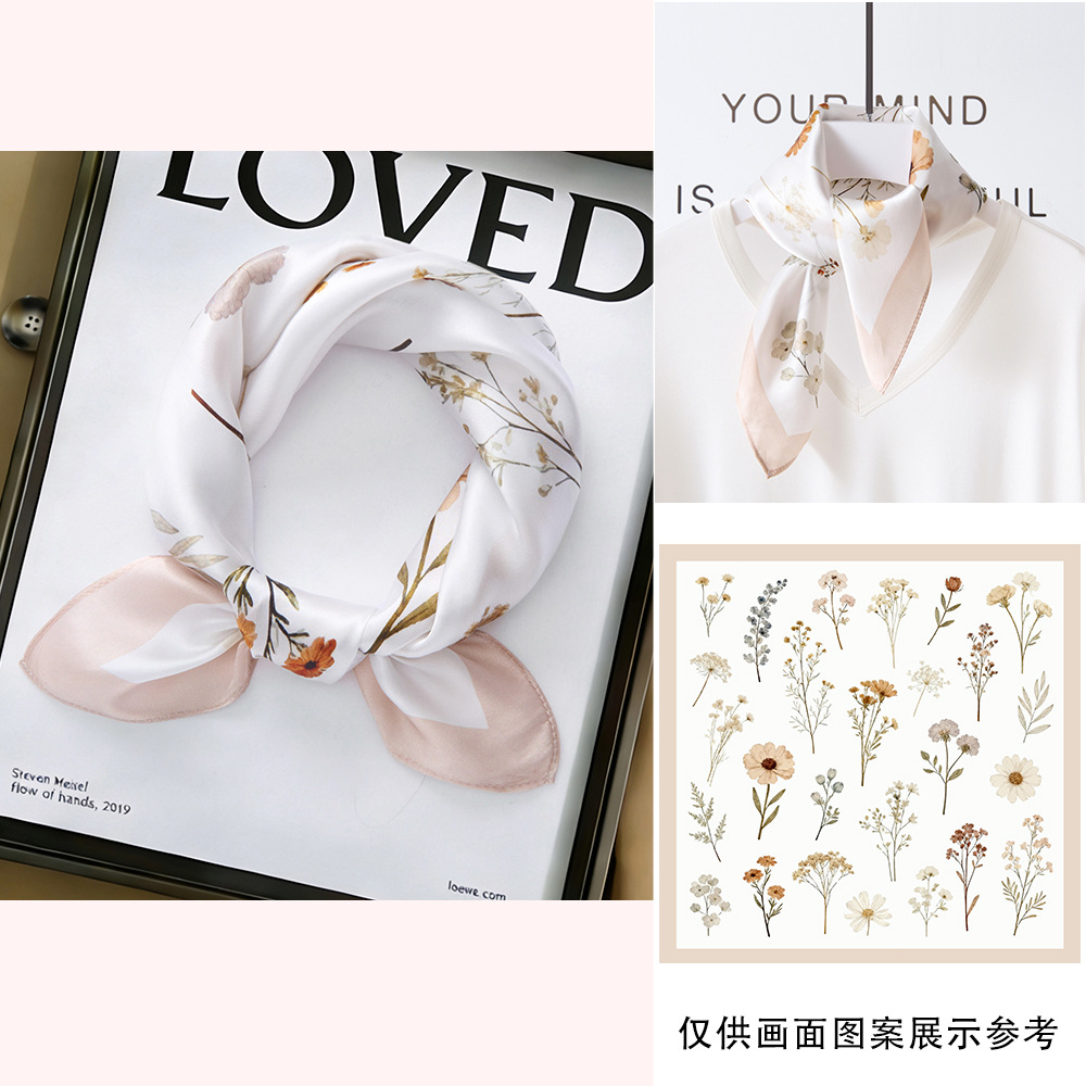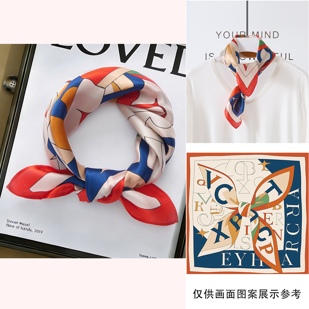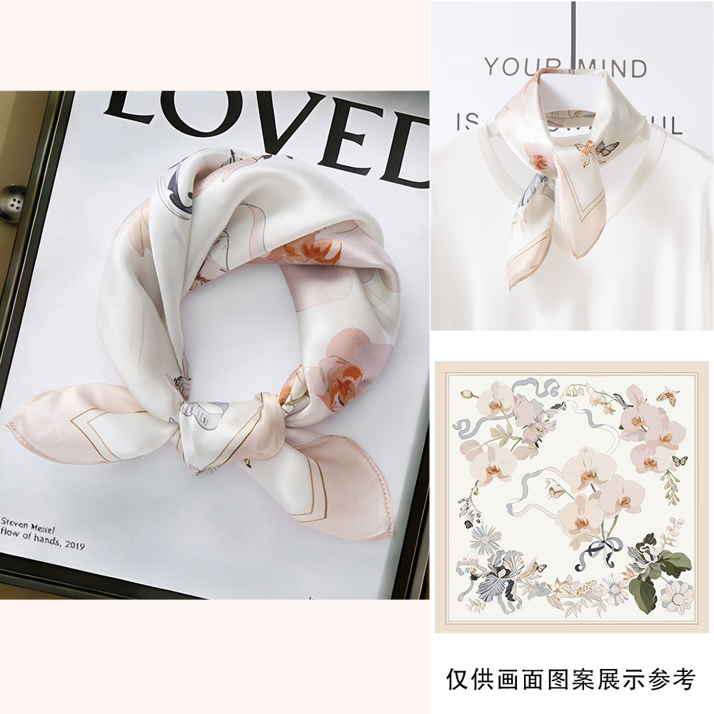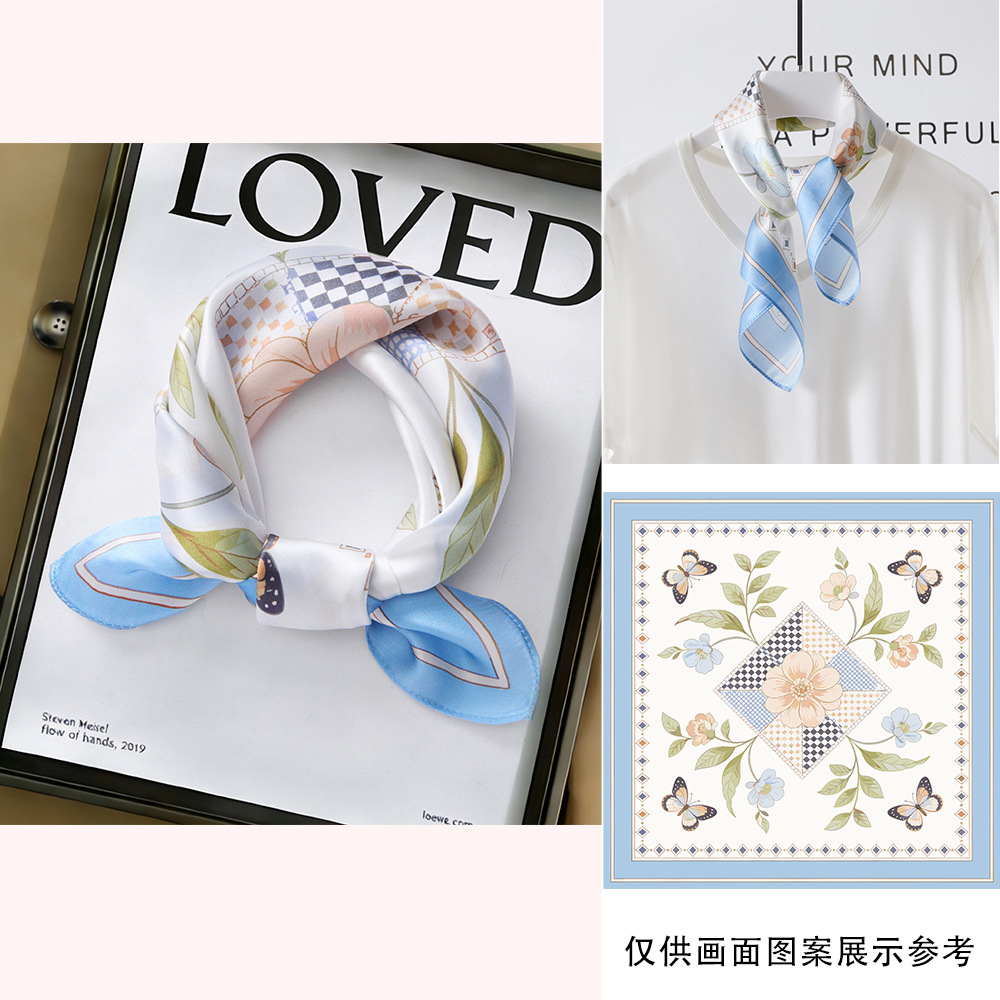 봄과 여름 실크 헤어 밴드 여성용 실크 작은 사각 스카프 리본 53cm 패션 넥타이 머리 뽕나무 실크 스카프 머리 스카프스토어 가기