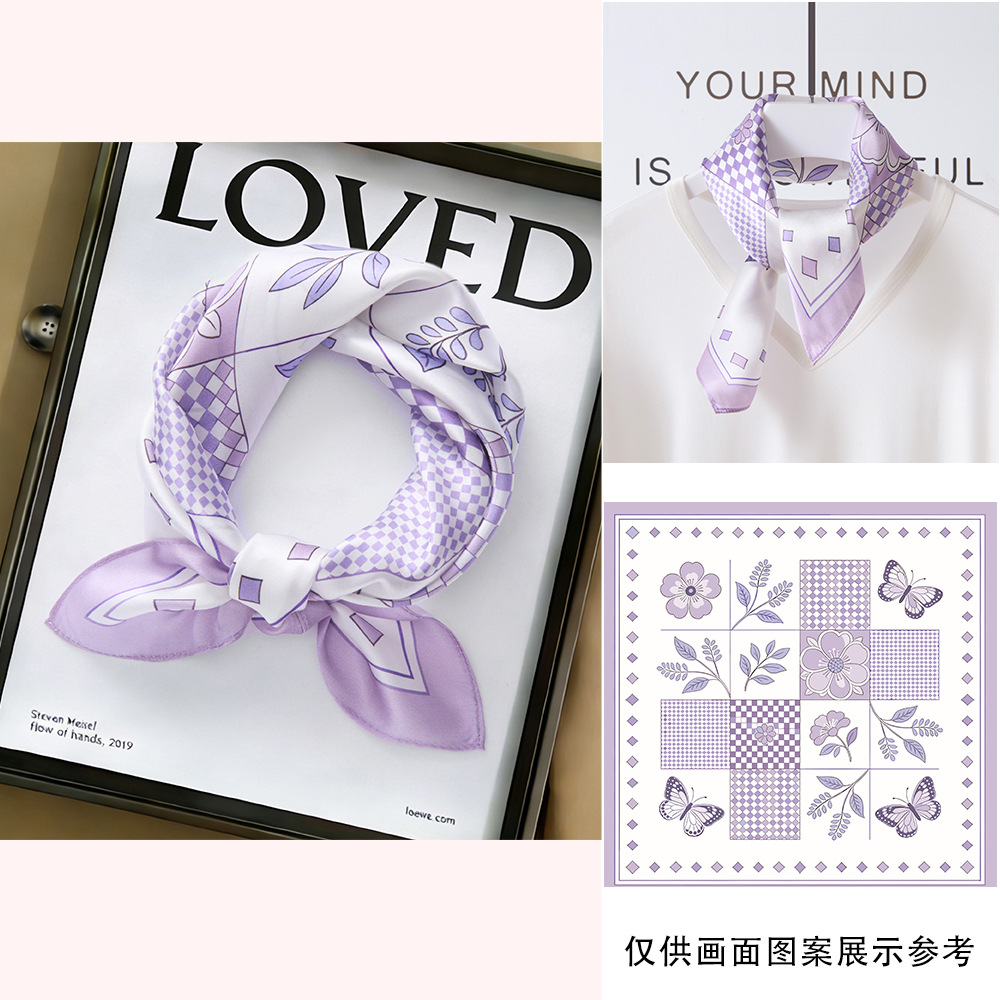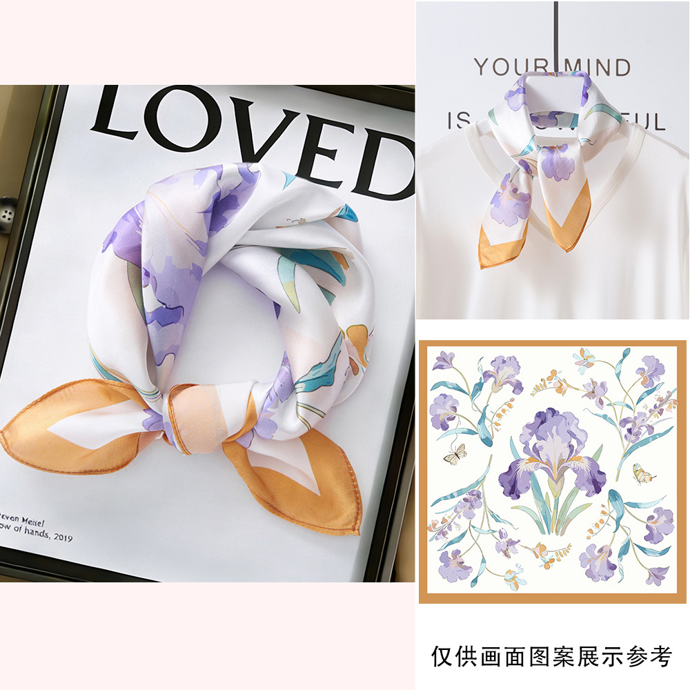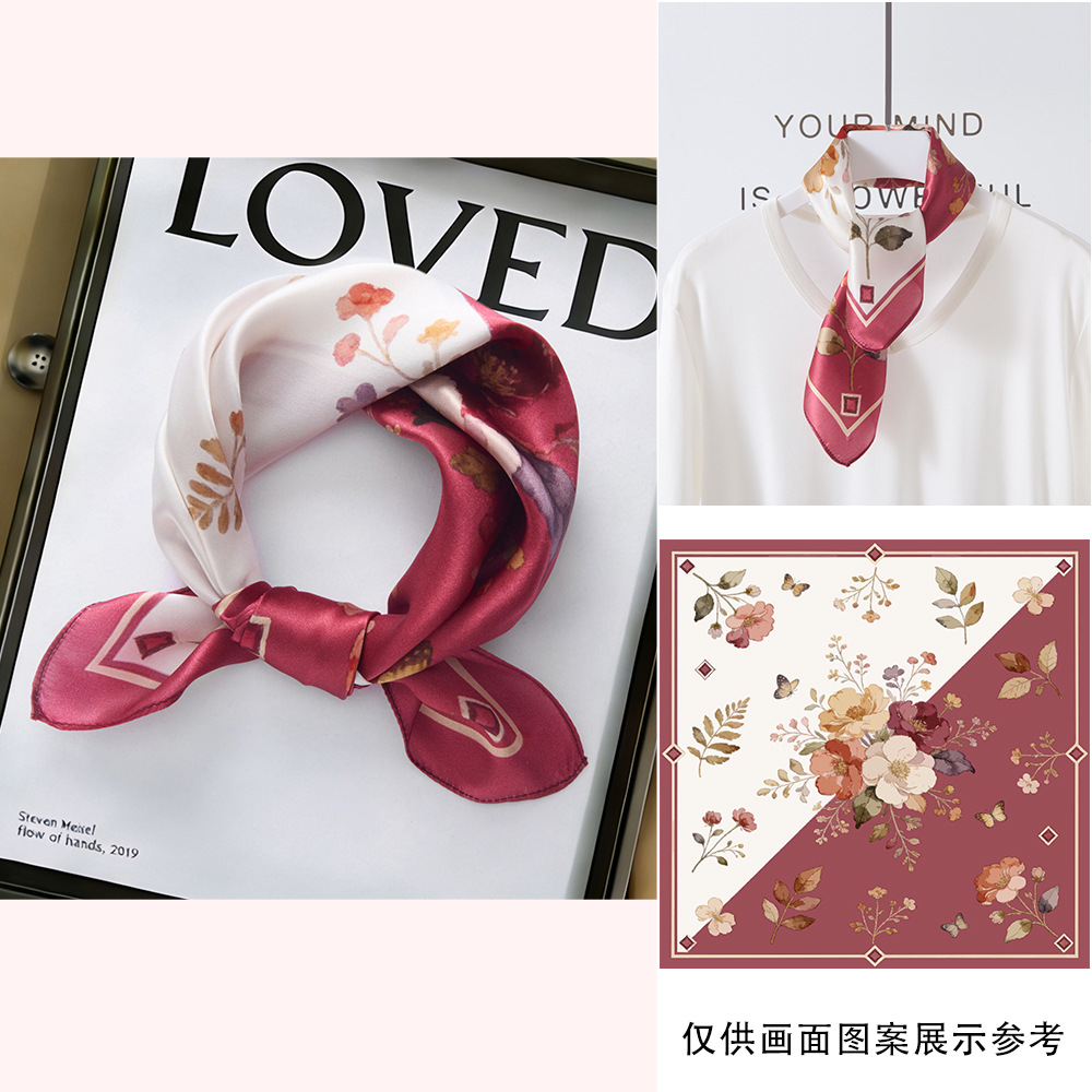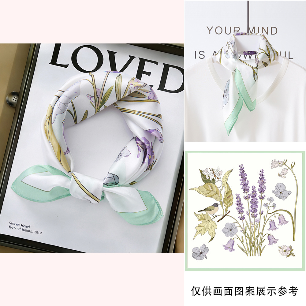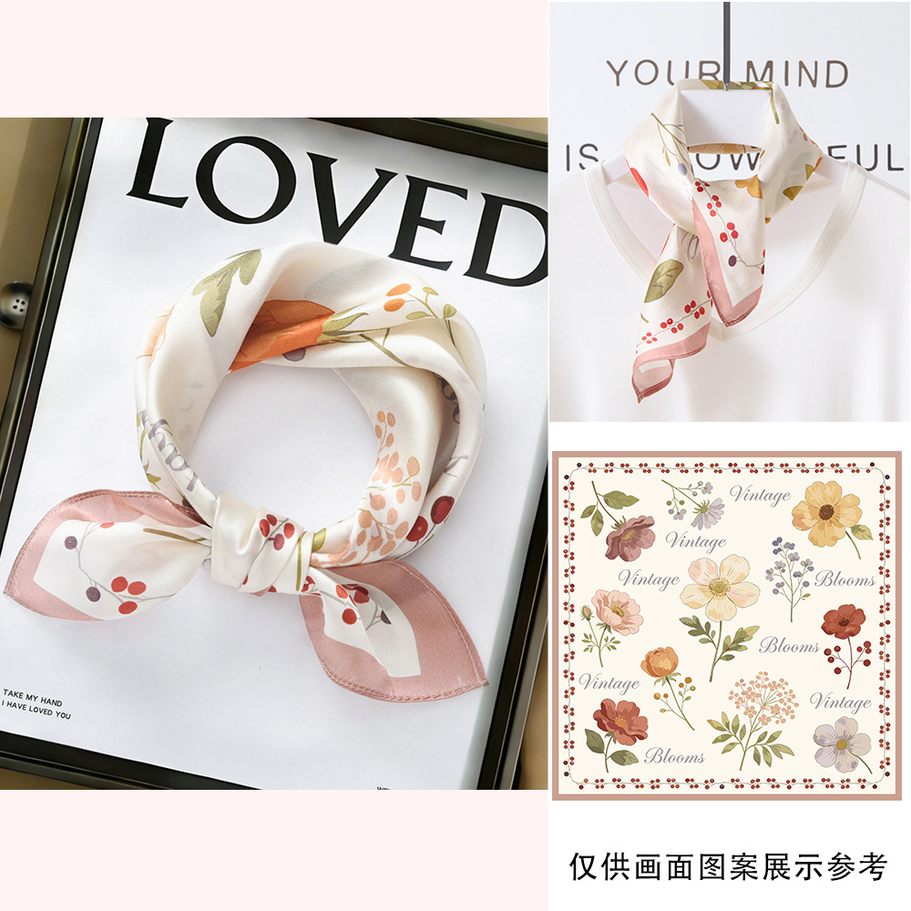 봄과 여름 실크 헤어 밴드 여성용 실크 작은 사각 스카프 리본 53cm 패션 넥타이 머리 뽕나무 실크 스카프 머리 스카프스토어 가기