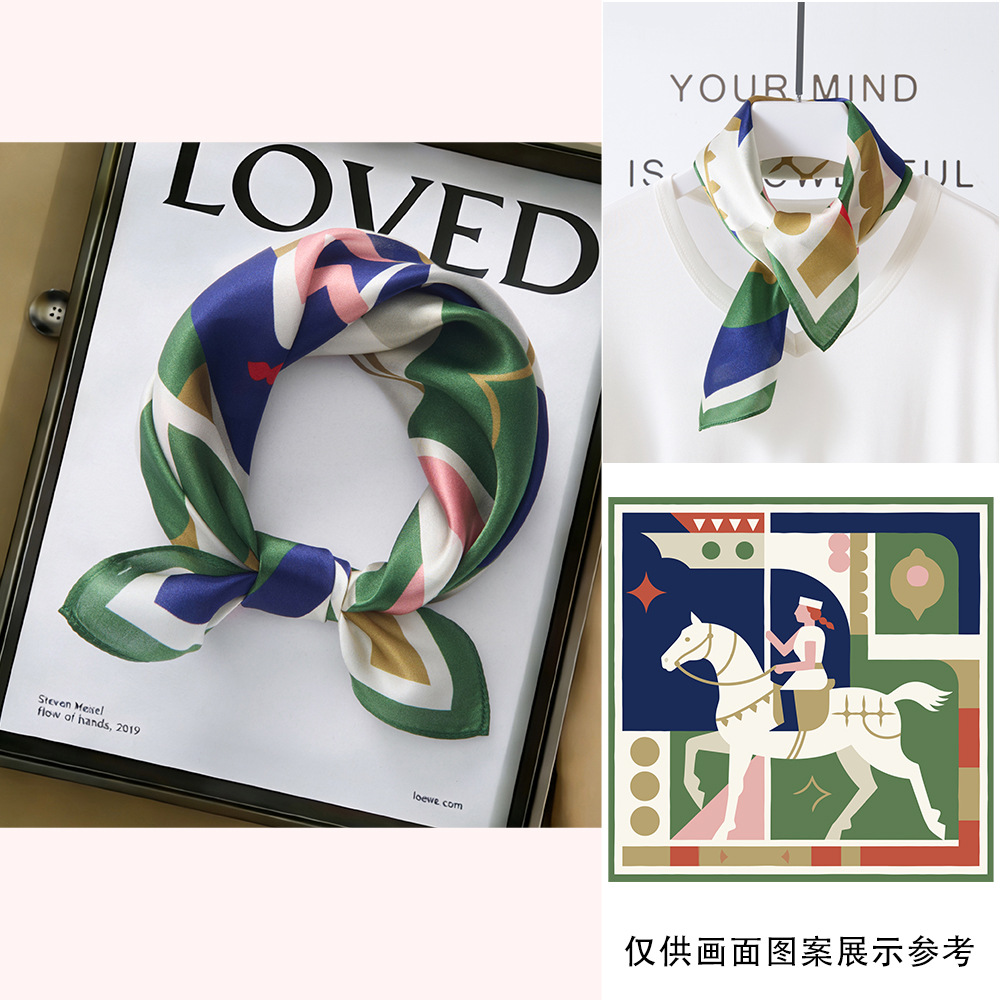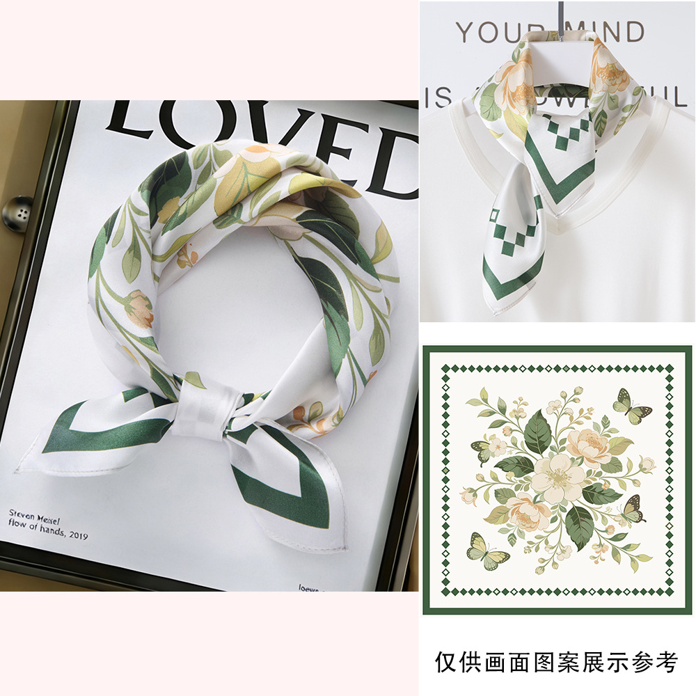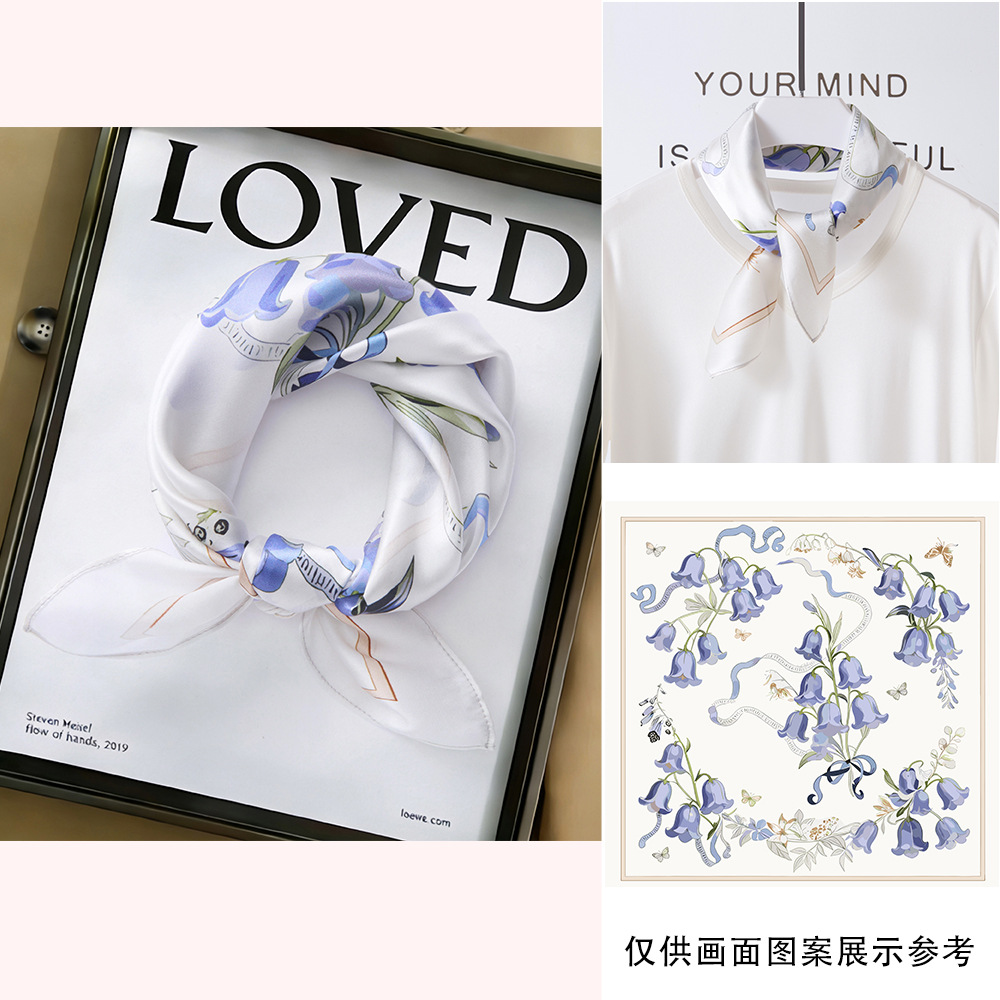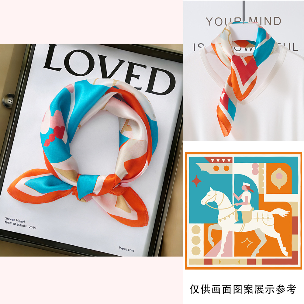 봄과 여름 실크 헤어 밴드 여성용 실크 작은 사각 스카프 리본 53cm 패션 넥타이 머리 뽕나무 실크 스카프 머리 스카프스토어 가기