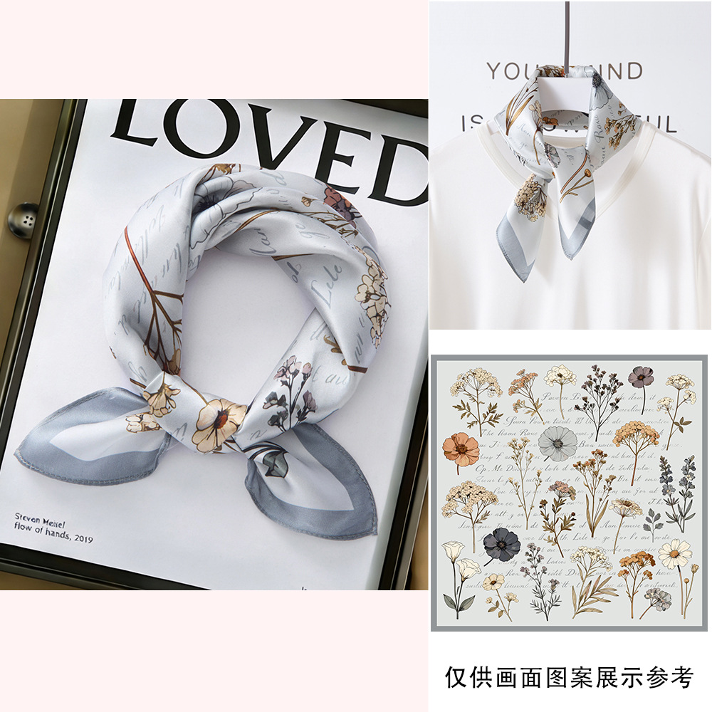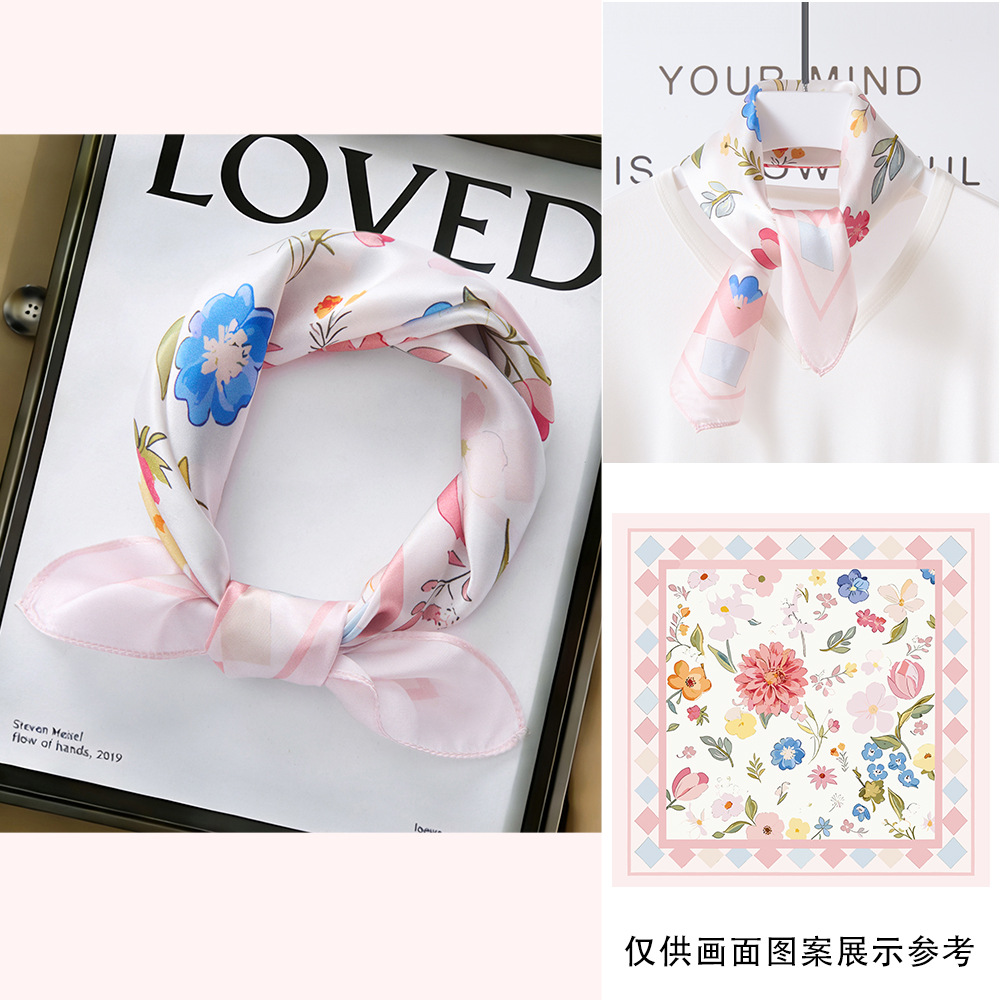 봄과 여름 실크 헤어 밴드 여성용 실크 작은 사각 스카프 리본 53cm 패션 넥타이 머리 뽕나무 실크 스카프 머리 스카프