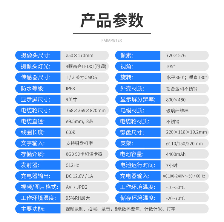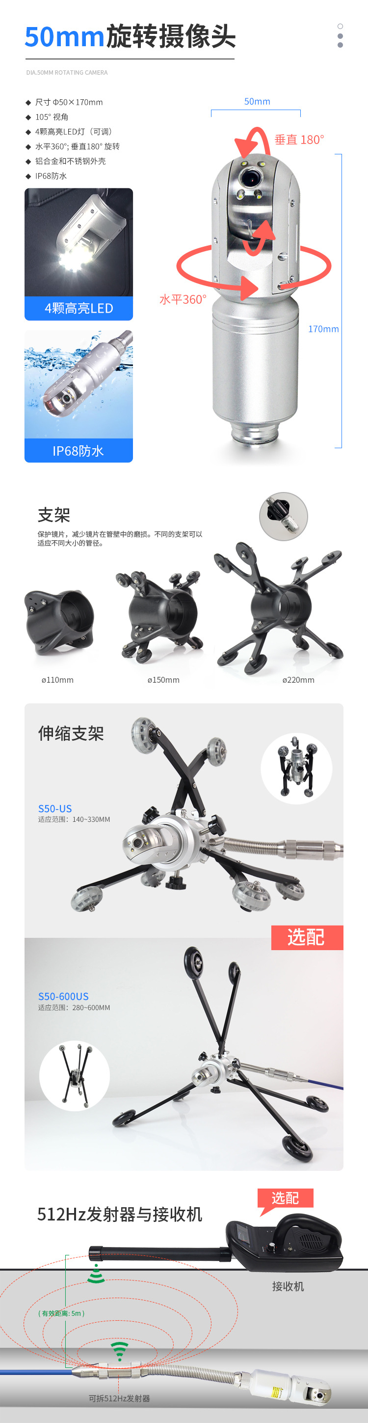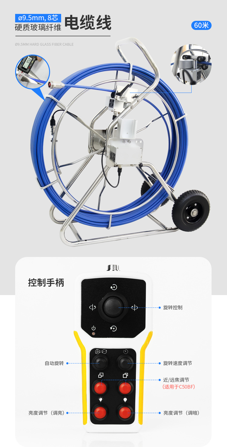 화푸센 공장 직판 360도 회전 내시경 대형 배관 검사 카메라 하수구 고화질 카메라