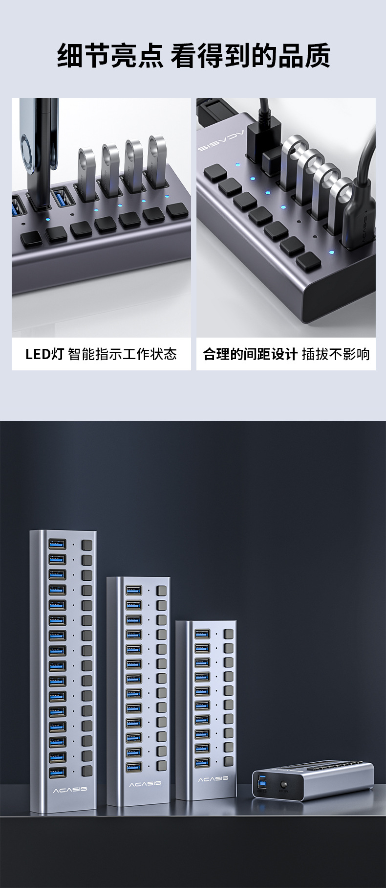 아카시스 USB3.0 허브 3포트 7포트 10포트 노트북 휴대폰 허브 금속 분배기