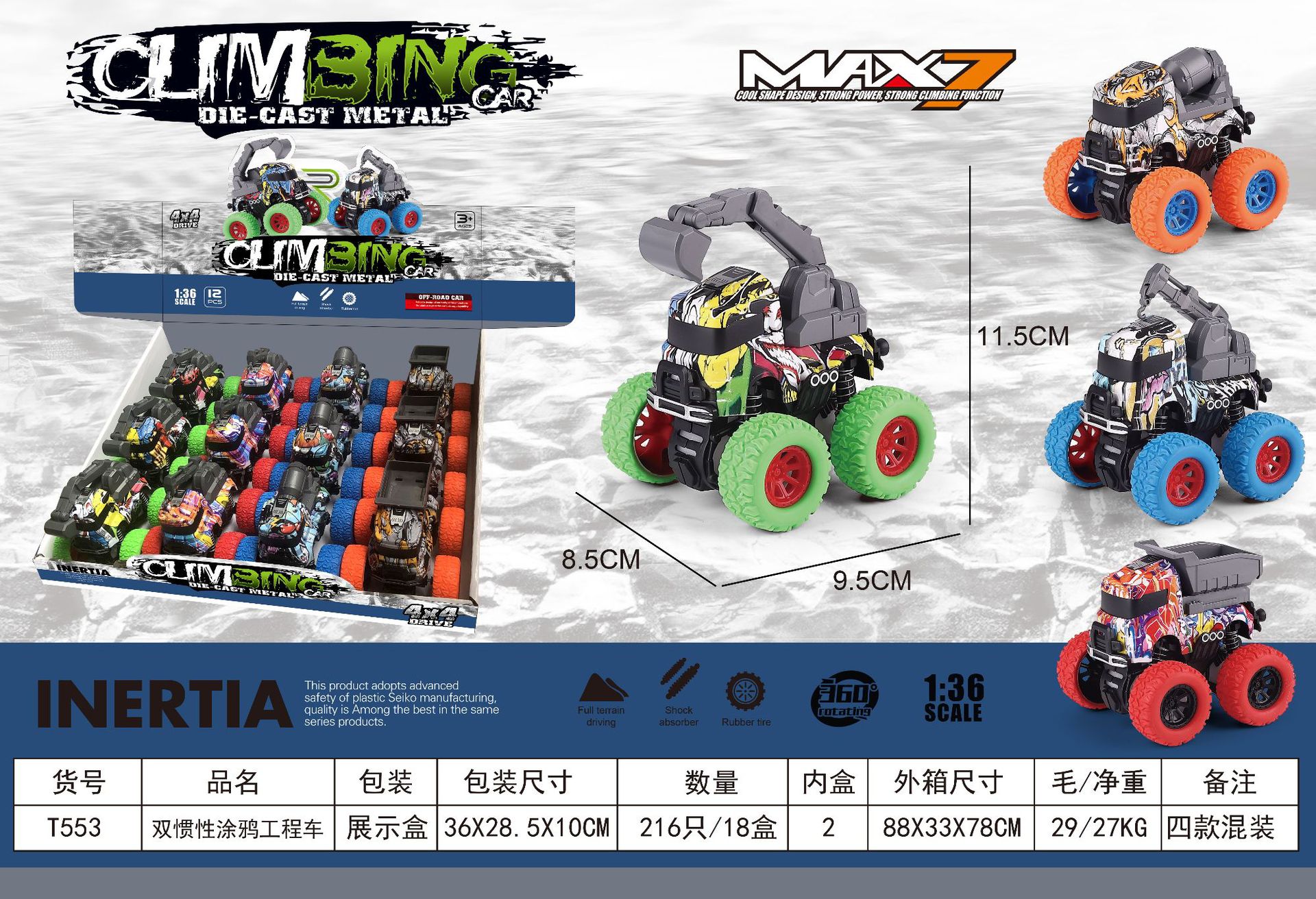 어린이 장난감 자동차, 엔지니어링 차량, 도매용 관성 오프로드 장난감 자동차, 공룡 인형, 인터넷 유명 상품, 노점상 제품, 해외 수출 상품