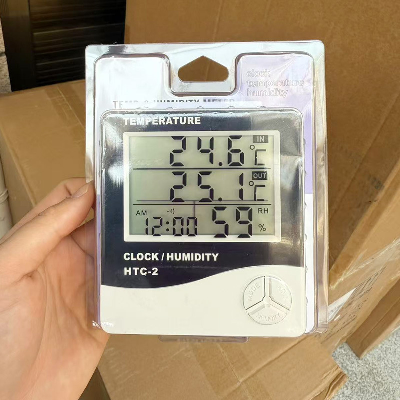 HTC-2室内外温湿度计闹钟 创意家用双温显示带探测头电子温度计