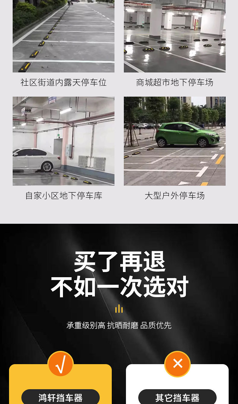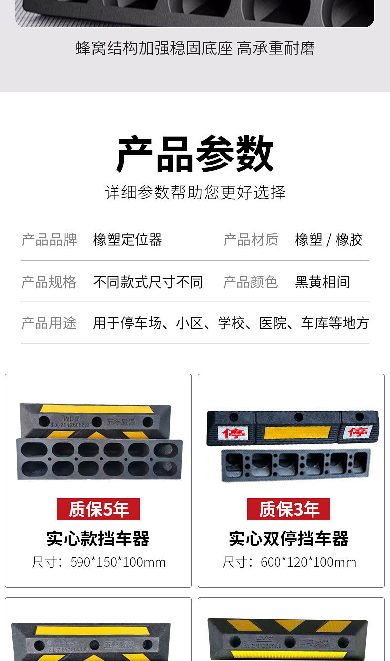 橡胶停车位地档阻车器车挡止退限位器停车库车轮橡塑定位器挡车器