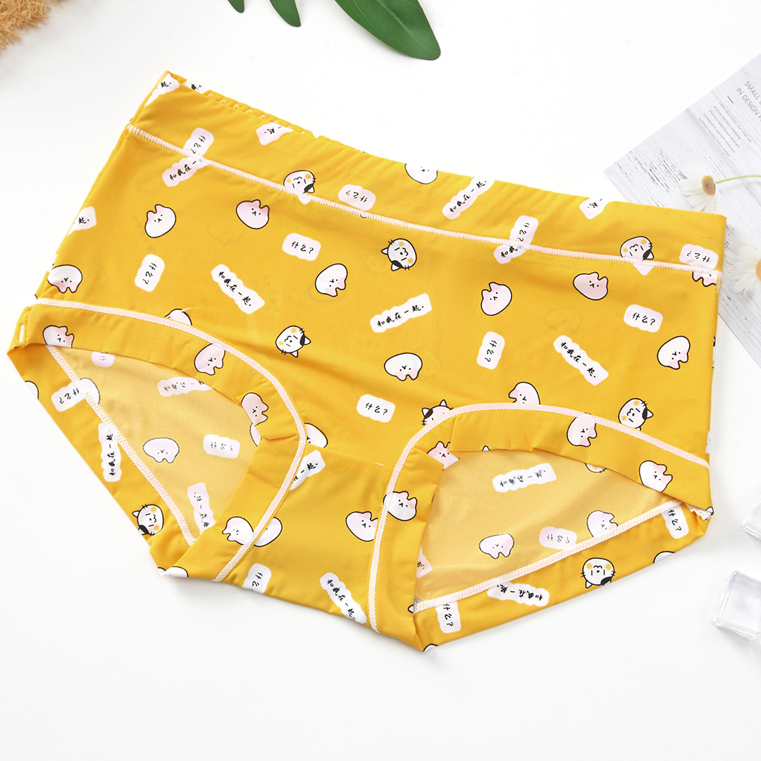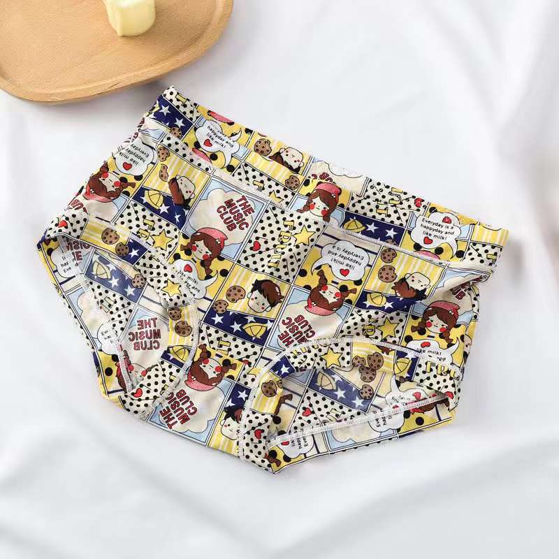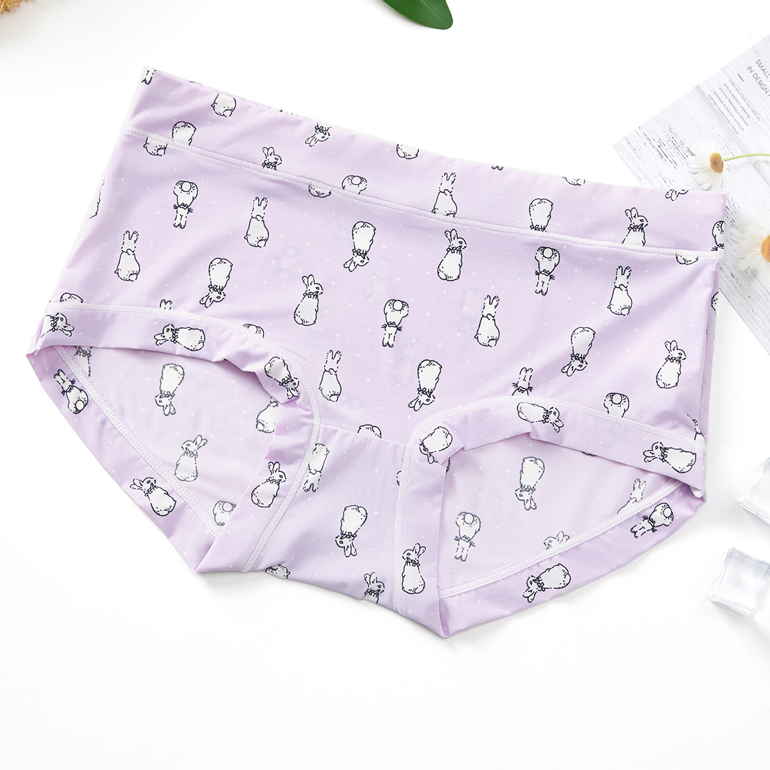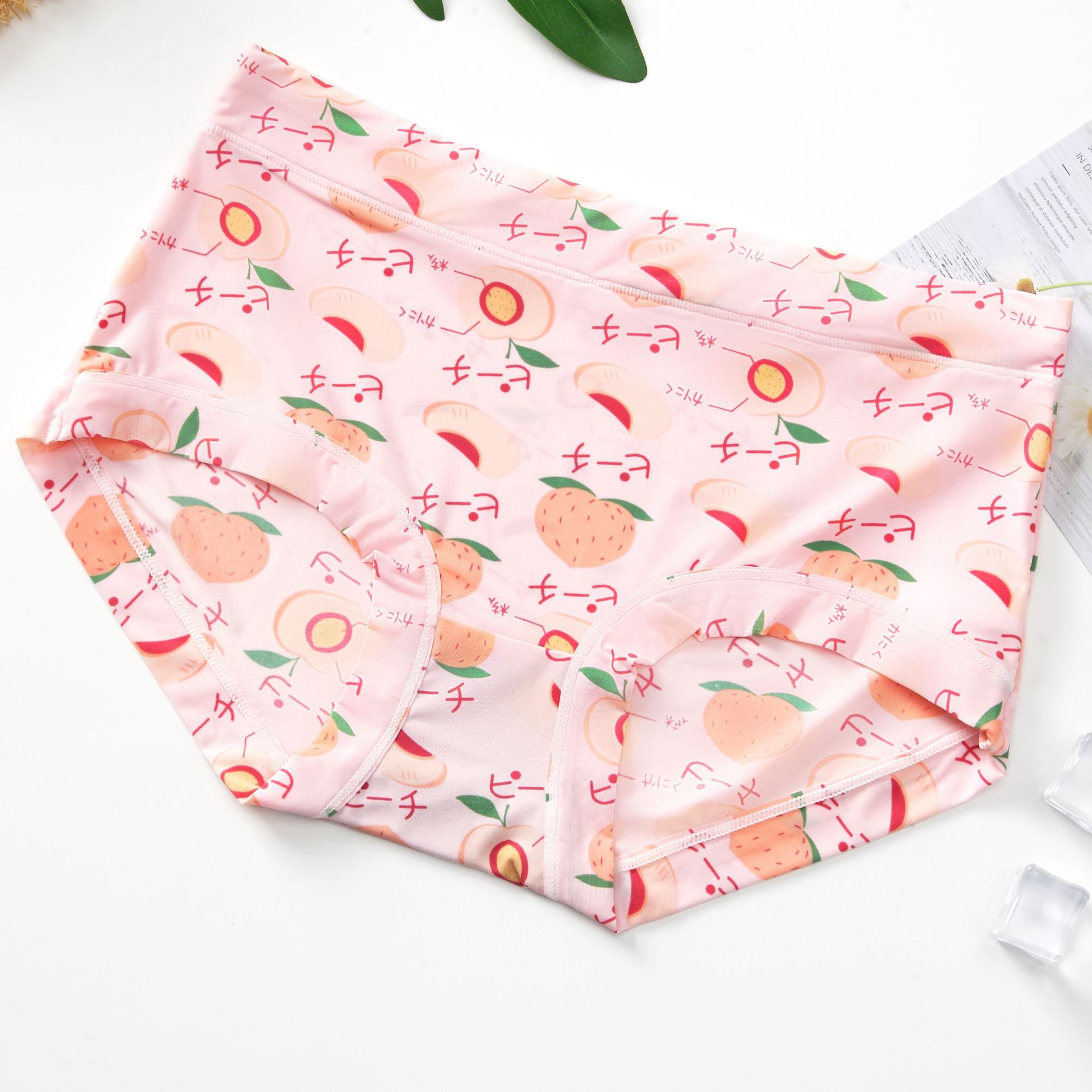 실키 아이스 실크 프린트 속옷 여성용 미드 웨이스트 원활한 일본식 여성용 힙 브리프스토어 가기