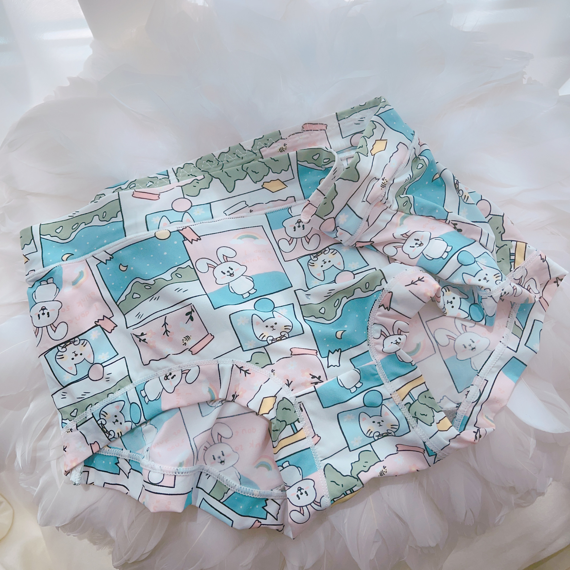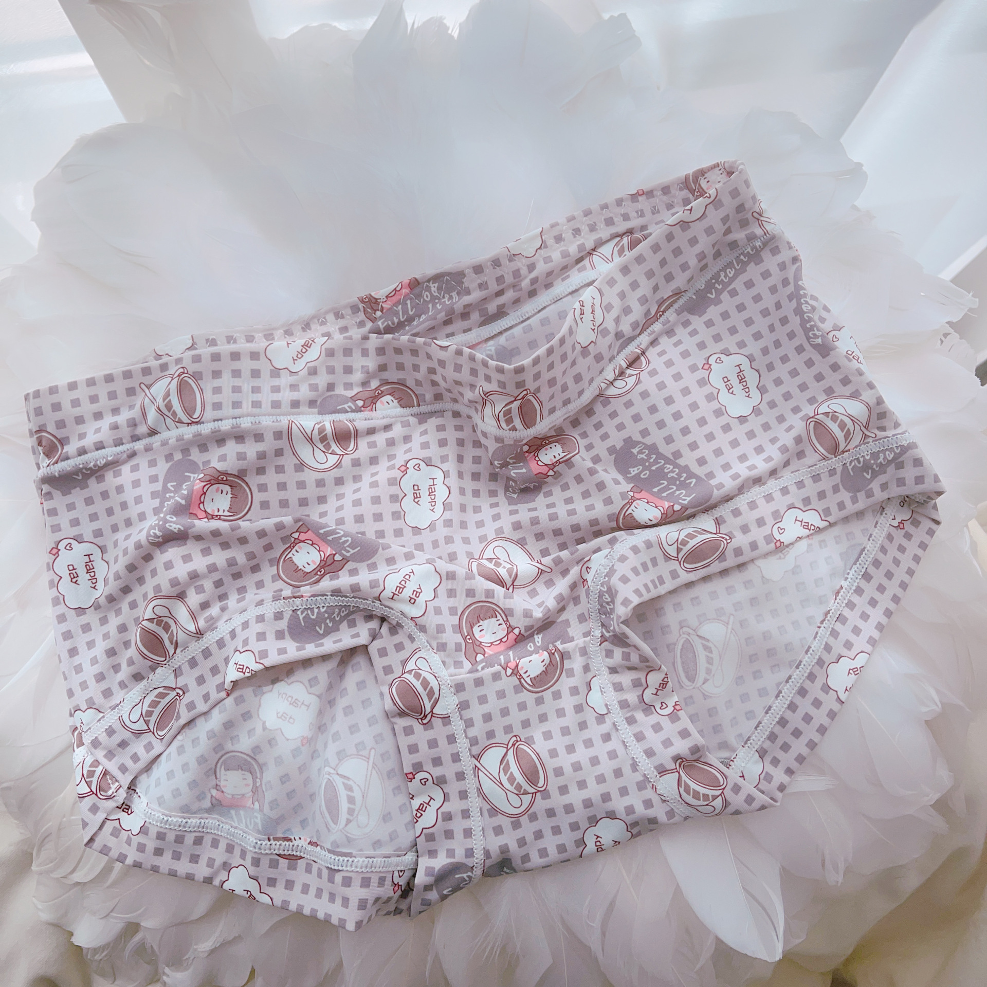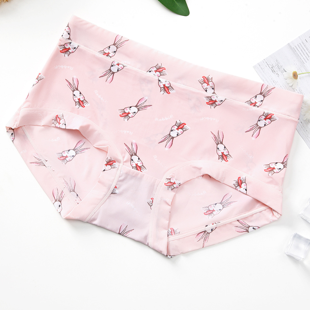 실키 아이스 실크 프린트 속옷 여성용 미드 웨이스트 원활한 일본식 여성용 힙 브리프스토어 가기