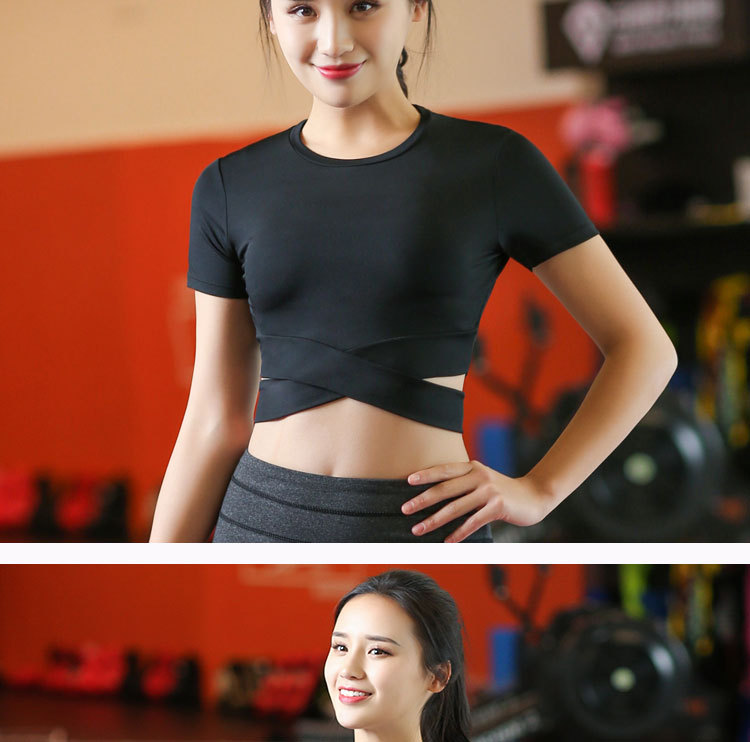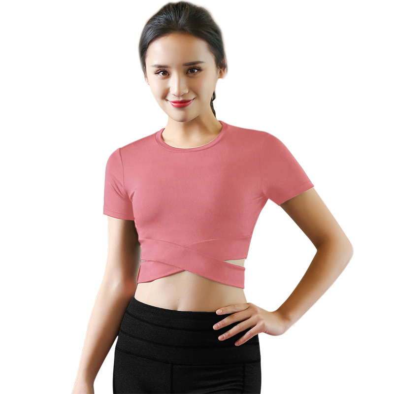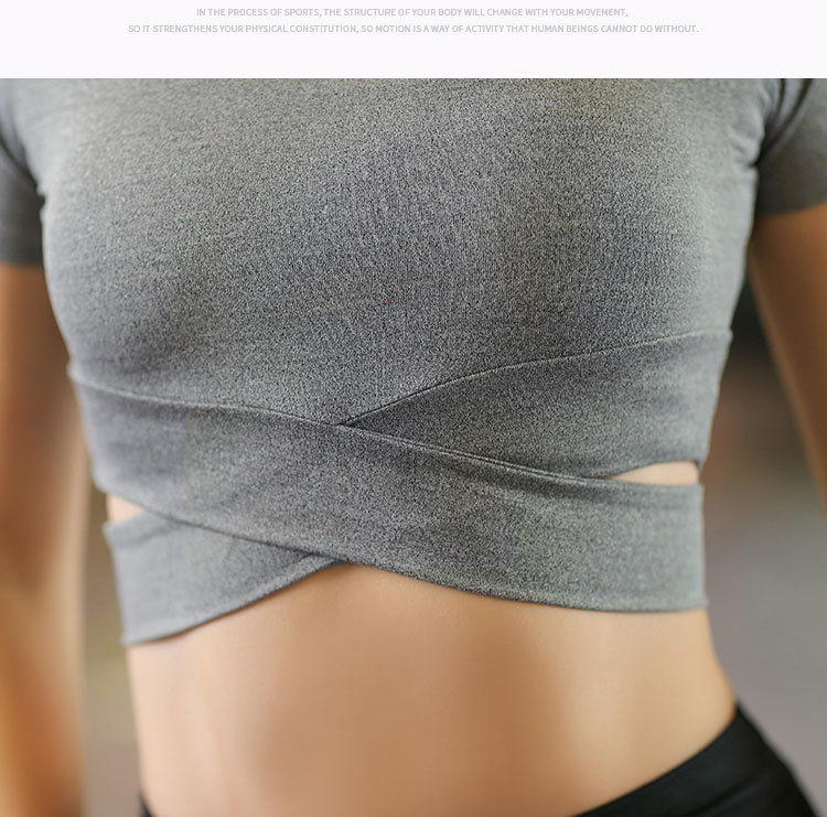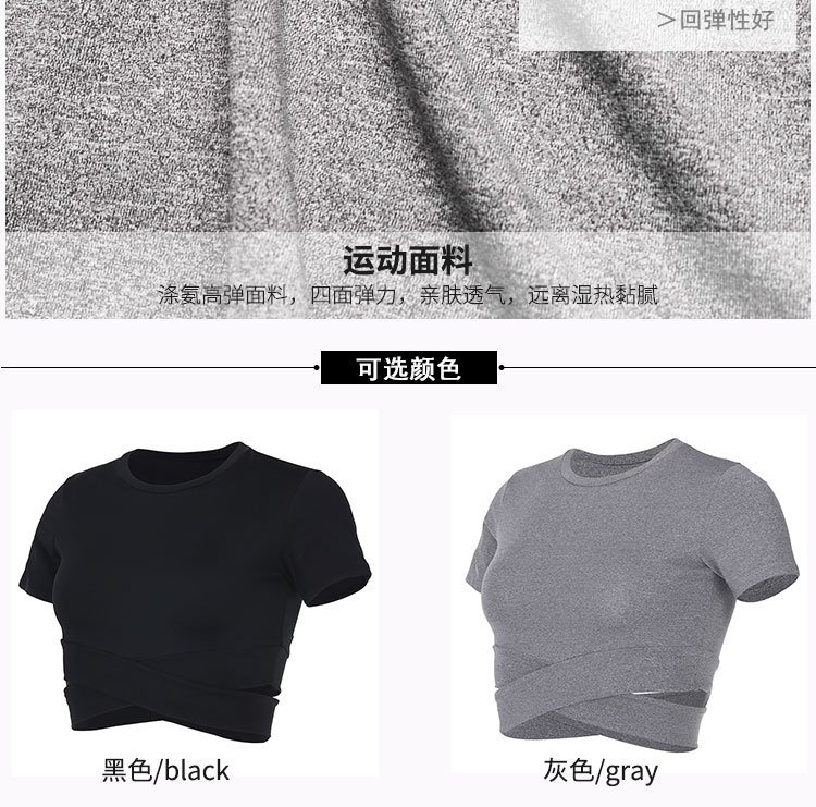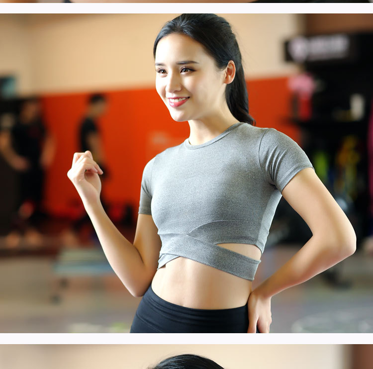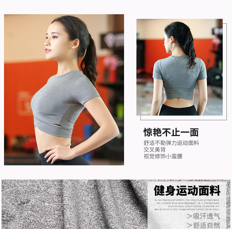 여름용 짧은 기장 크롭탑 피트니스 반팔 탑, 여성용 타이트핏 크로스 디자인 땀 흡수 통기성 요가복 티셔츠, 강력한 공장 직판스토어 가기