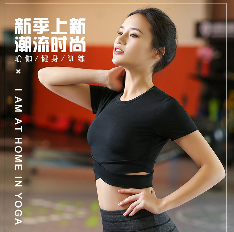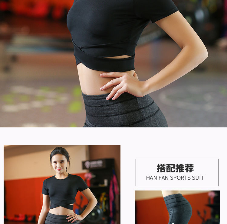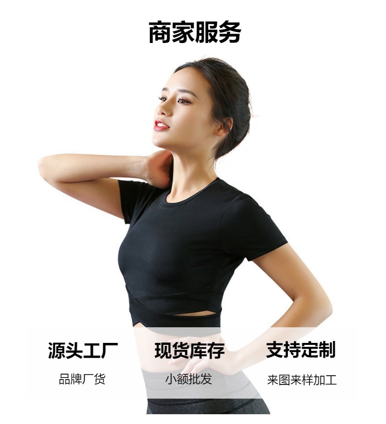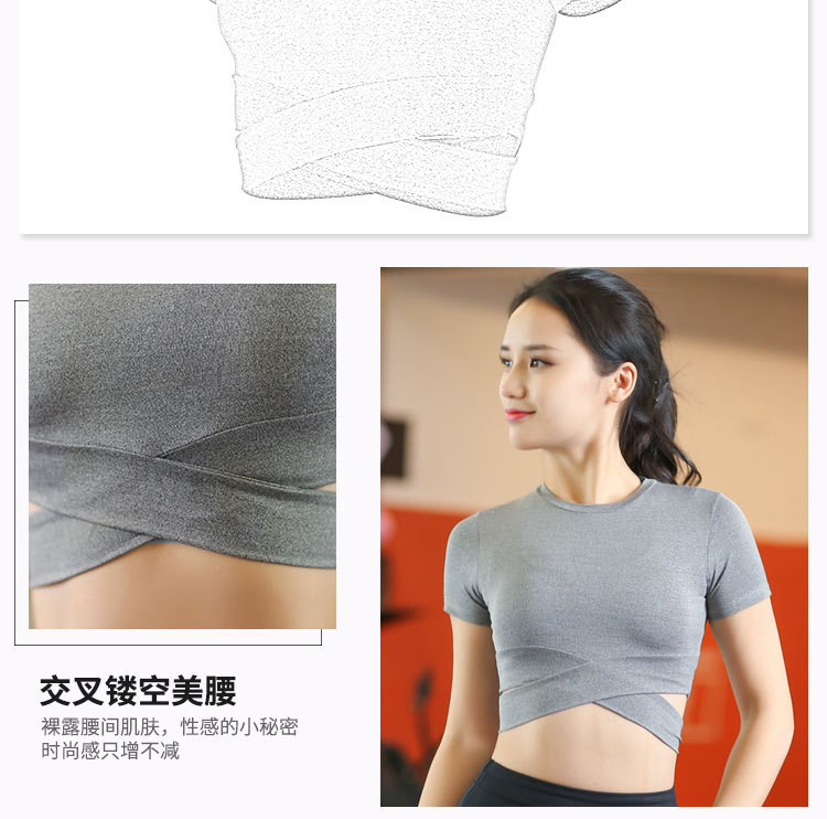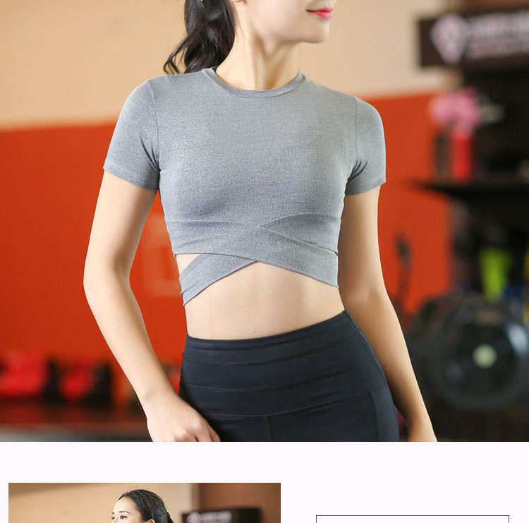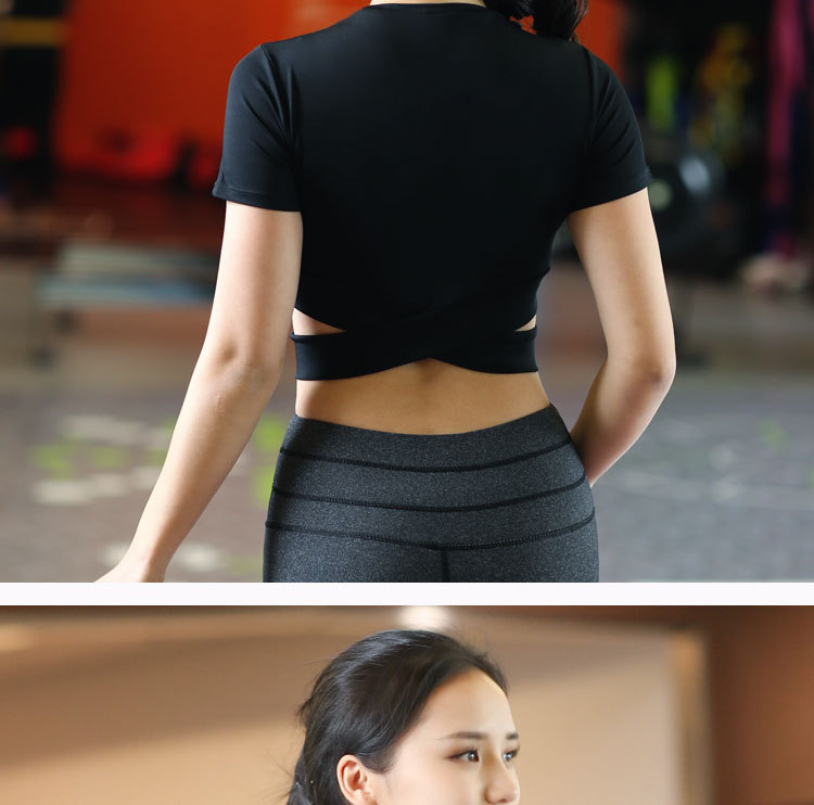 여름용 짧은 기장 크롭탑 피트니스 반팔 탑, 여성용 타이트핏 크로스 디자인 땀 흡수 통기성 요가복 티셔츠, 강력한 공장 직판스토어 가기