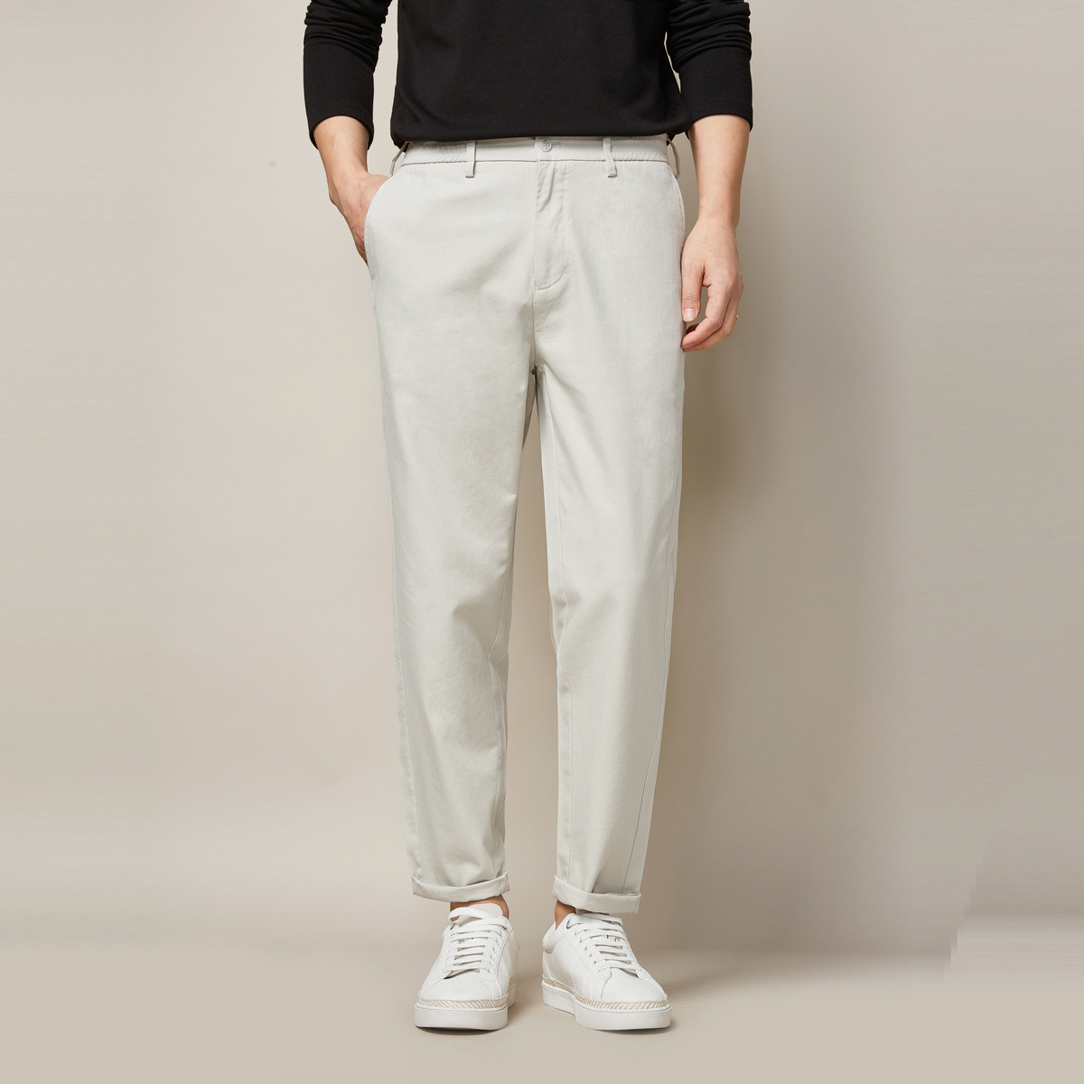 모마이크 남성 중간 허리 라인 기모 캐주얼 팬츠 봄철 스트레이트 팬츠 루즈핏 9부 팬츠 남성용 9113.