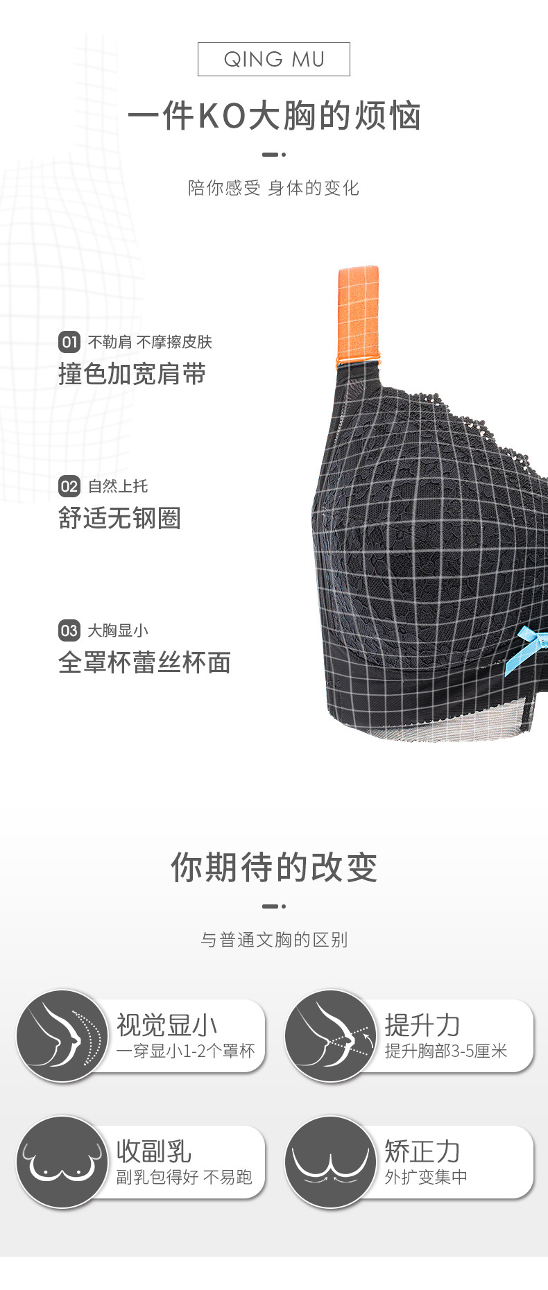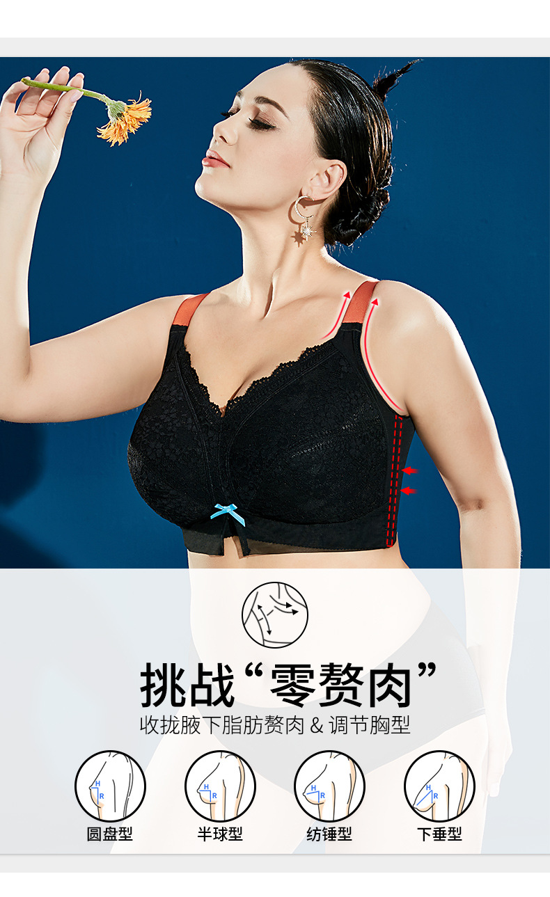 여성용 도매 큰 가슴 작은 속옷, 통기성, 얇은, 와이어 프리, 대형 브라, 처짐 방지 순면 풀 컵 브라스토어 가기