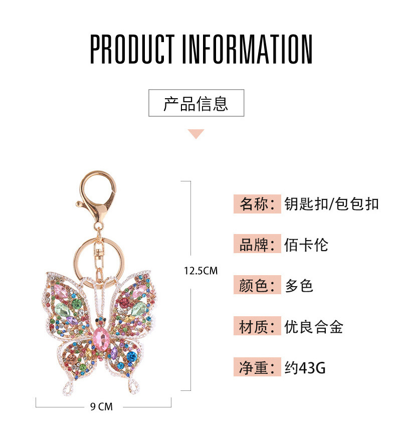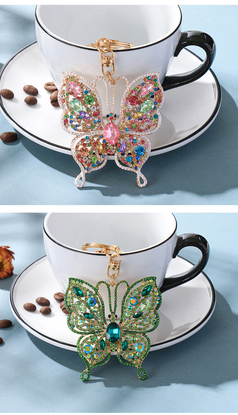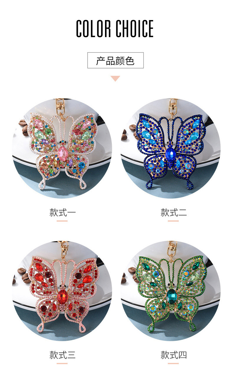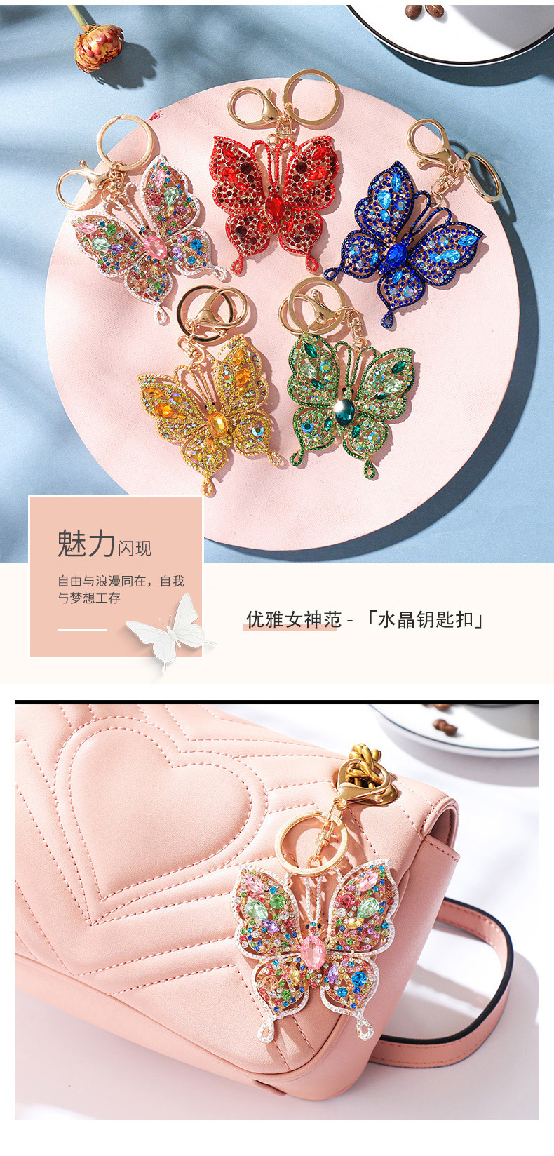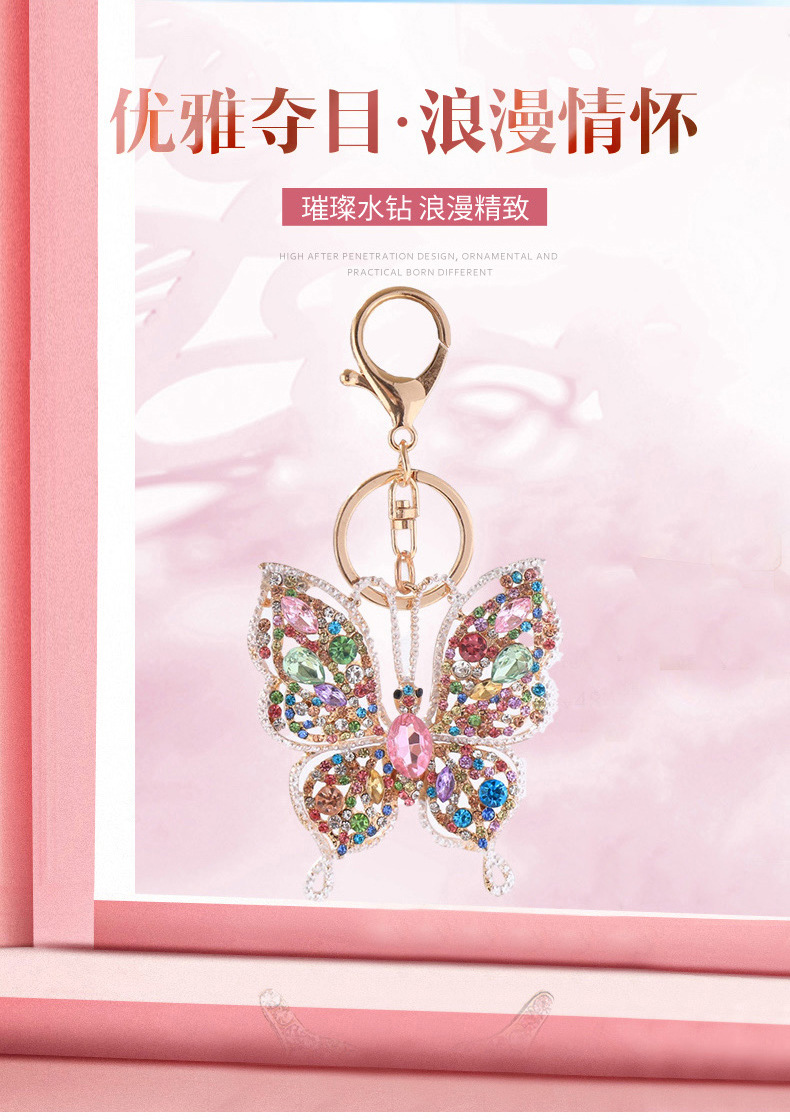 공장 직공급 구미 컬러 다이아몬드 열쇠 고리 펜던트 나비 크리에이티브 도매 열쇠 고리 국경 작은 선물스토어 가기