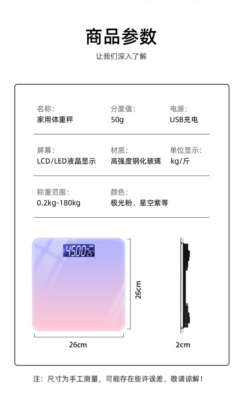 재고 있음, 즉시 배송 가능, 가정용 정밀 인체 건강 전자 체중계, 스마트 고정밀 충전식 전자 체중계