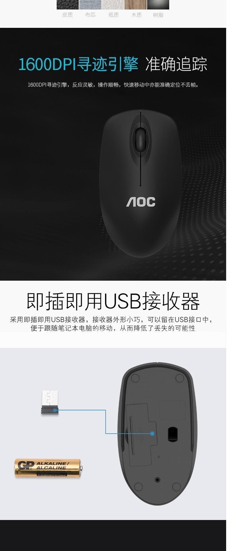 AOC MS320 무선 마우스 2.4G 노트북 데스크탑 오피스 비즈니스 컴퓨터 미니 사일런트 마우스